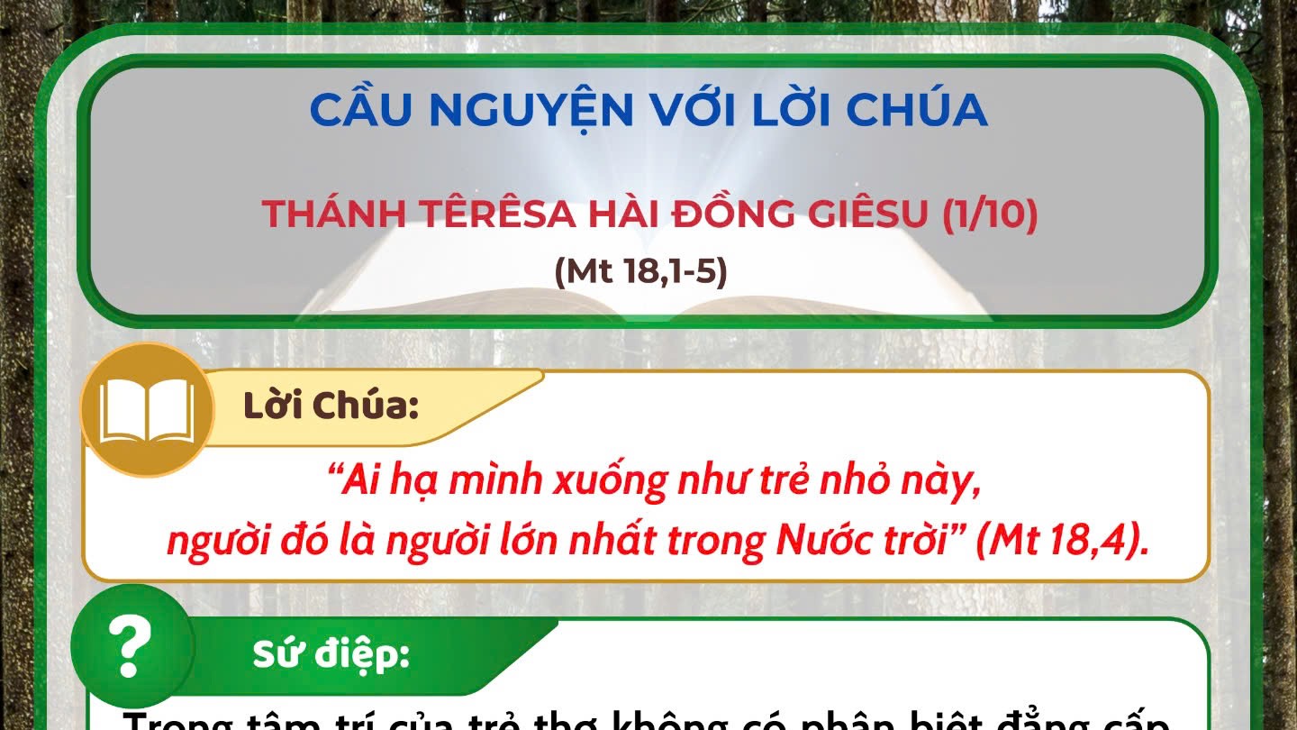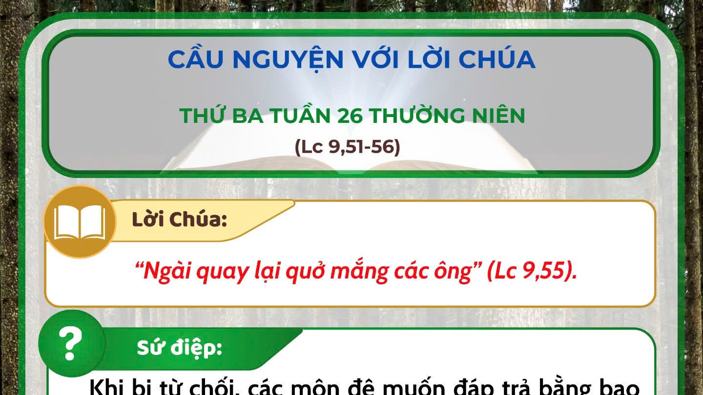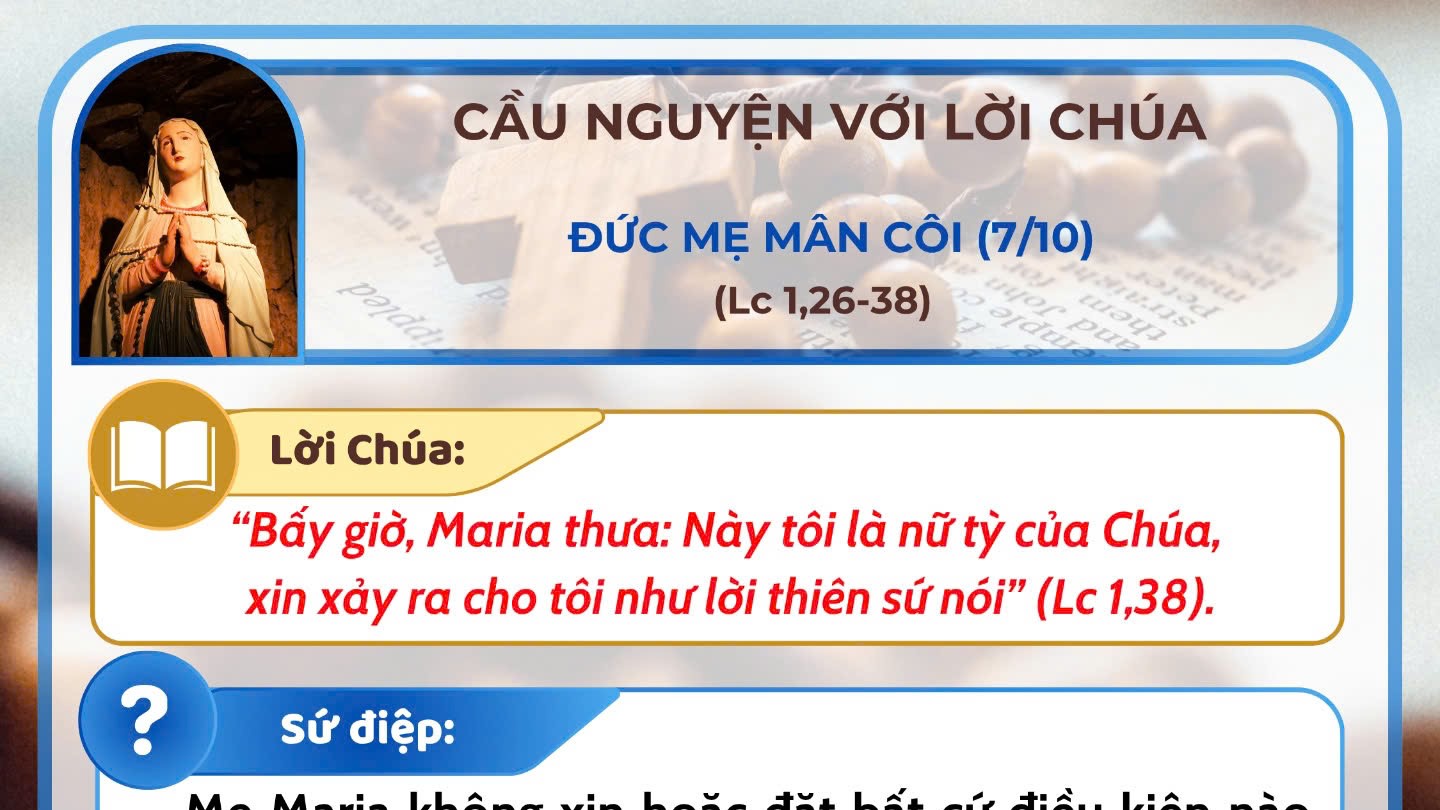 Cầu nguyện với Lời Chúa 12345678910 Cầu nguyện với Lời Chúa: thứ Năm tuần 27 thường niên năm C Cầu nguyện với Lời Chúa: thứ Tư tuần 27 thường niên năm C Cầu nguyện với Lời Chúa: Đức Mẹ Mân Côi Cầu nguyện với Lời Chúa: thứ Hai tuần 27 thường niên năm C Cầu nguyện với Lời Chúa: Chúa Nhật tuần 27 thường niên năm C Cầu nguyện với Lời Chúa: thứ Bảy tuần 26 thường niên năm C Cầu nguyện với Lời Chúa: thứ Sáu tuần 26 thường niên năm C Cầu nguyện với Lời Chúa: Các Thiên Thần Hộ Thủ Cầu nguyện với Lời Chúa: Thánh Têrêsa Hài Đồng Giêsu Cầu nguyện với Lời Chúa: thứ Ba tuần 26 thường niên năm C Cầu nguyện với Lời Chúa: Các Tổng Lãnh Thiên Thần Micael, Gabriel, Raphael Cầu nguyện với Lời Chúa: Chúa Nhật tuần 26 thường niên năm C Cầu nguyện với Lời Chúa: thứ Bảy tuần 25 thường niên năm C Cầu nguyện với Lời Chúa: thứ Sáu tuần 25 thường niên năm C Cầu nguyện với Lời Chúa: thứ Năm tuần 25 thường niên năm C Cầu nguyện với Lời Chúa: thứ Tư tuần 25 thường niên năm C Cầu nguyện với Lời Chúa: thứ Ba tuần 25 thường niên năm C Cầu nguyện với Lời Chúa: thứ Hai tuần 25 thường niên năm C Cầu nguyện với Lời Chúa: Chúa Nhật tuần 25 thường niên năm C Cầu nguyện với Lời Chúa: thứ Bảy tuần 24 thường niên năm C Cầu nguyện với Lời Chúa: thứ Sáu tuần 24 thường niên năm C Cầu nguyện với Lời Chúa: thứ Năm Tuần 24 thường niên năm C Cầu nguyện với Lời Chúa: thứ Tư Tuần 24 thường niên năm C Cầu nguyện với Lời Chúa: Thứ Ba Tuần 24 thường niên năm C Cầu nguyện với Lời Chúa: Đức Mẹ Sầu Bi Năm C Cầu nguyện với Lời Chúa: Suy tôn Thánh Giá Năm C Cầu nguyện với Lời Chúa: thứ Bảy tuần 23 thường niên năm C Cầu nguyện với Lời Chúa: thứ Sáu tuần 23 thường niên năm C Cầu nguyện với Lời Chúa: thứ Năm tuần 23 thường niên năm C Cầu nguyện với Lời Chúa: thứ Tư tuần 23 thường niên năm C 12345678910