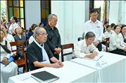 Lm. Rôcô Nguyễn Duy - Trưởng ban Ban Mục vụ Thánh Nhạc TGP Sài Gòn và các nhạc sỹ đại diện kính viếng Đức cố Hồng y Gioan Baotixita sáng ngày 26-03-2026