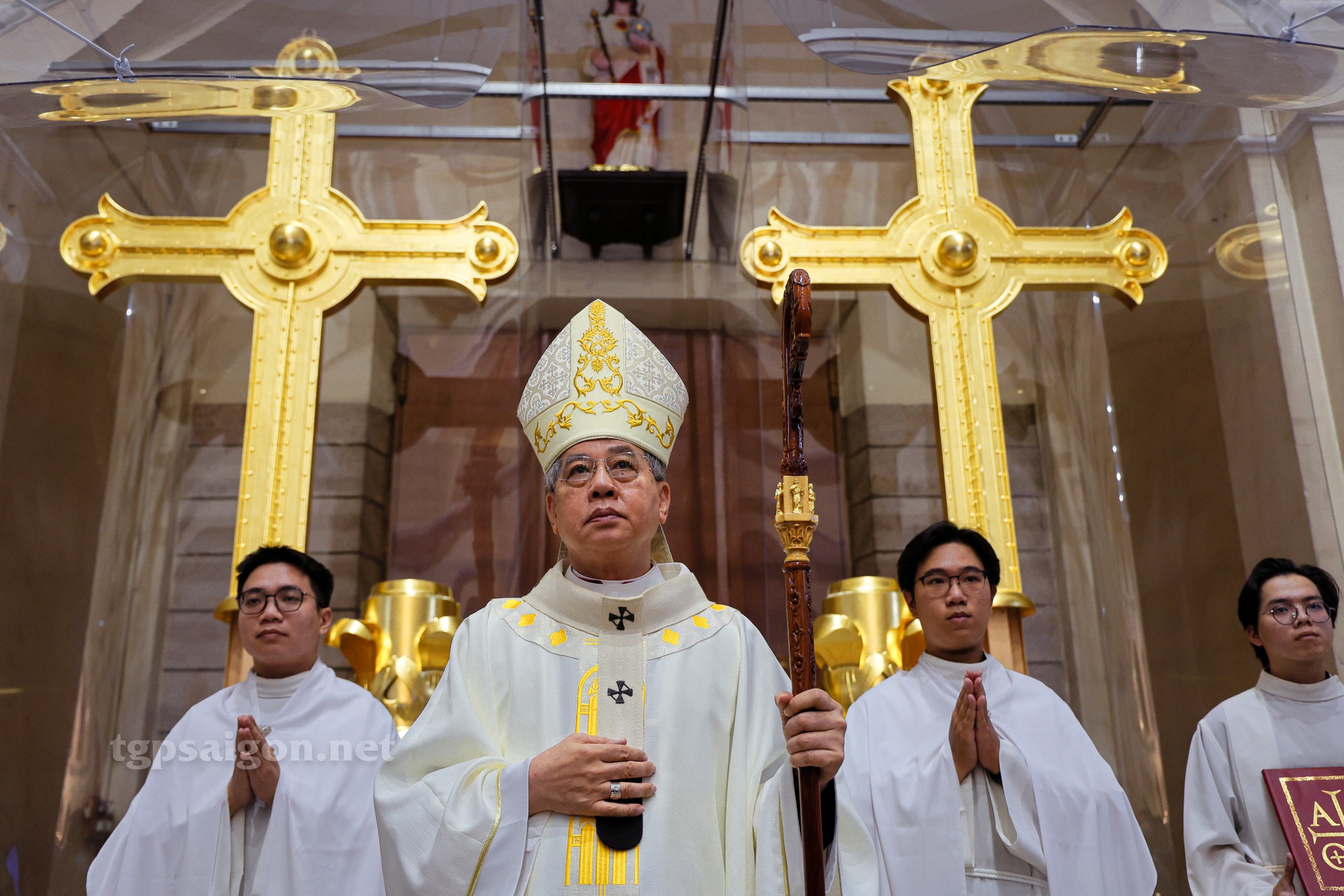 Thánh lễ mừng kính Đức Mẹ Vô Nhiễm Nguyên Tội, ĐTGM Giuse Nguyễn Năng làm phép 2 cây Thánh giá mới của Nhà thờ Chính toà