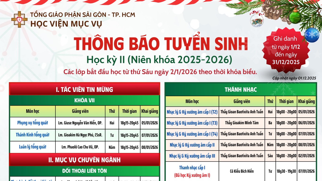 Thư mục vụ Mùa Vọng và Giáng sinh 2025
