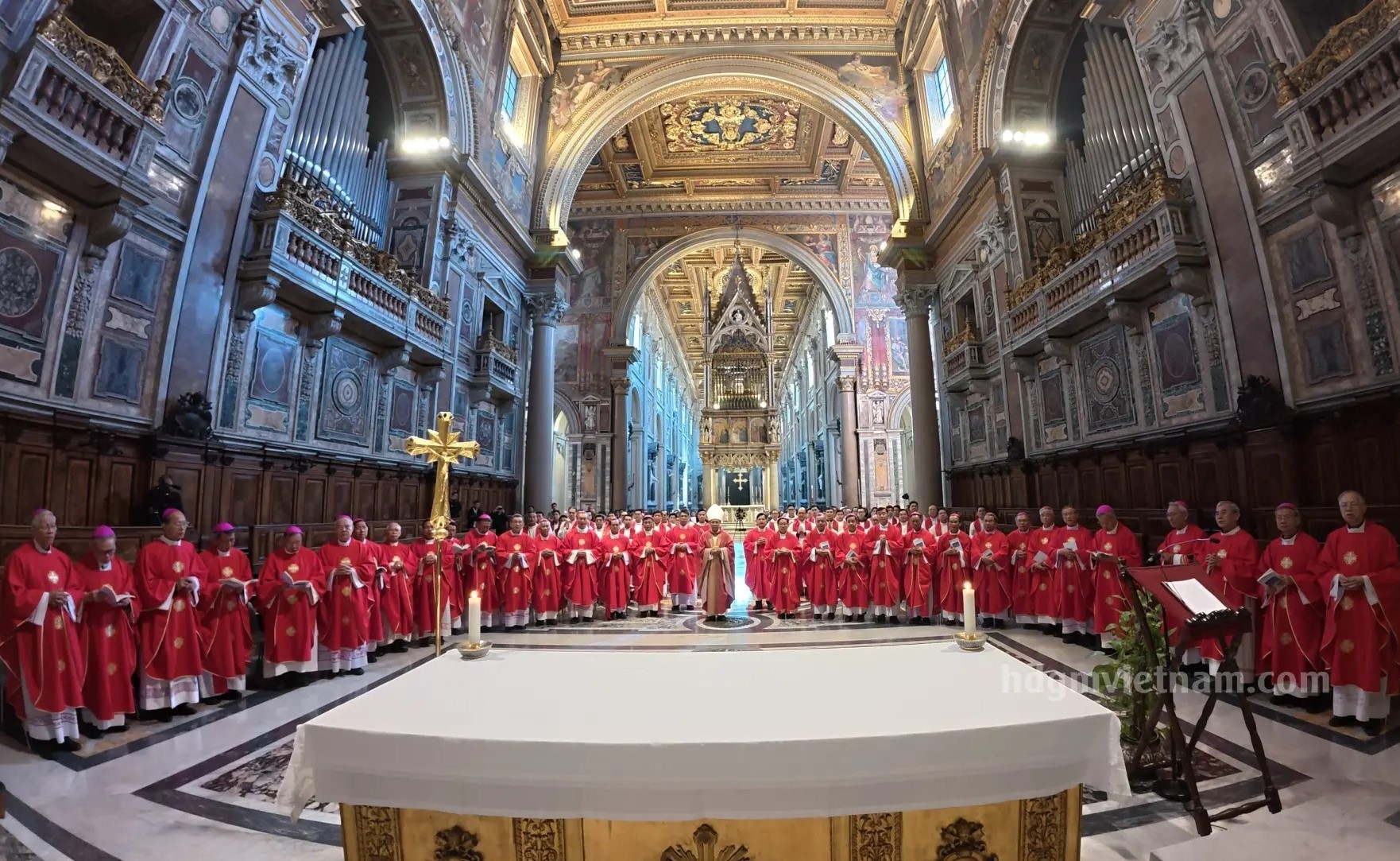 Hành trình hiệp thông Ad Limina 2026 của Hội đồng Giám mục Việt Nam - ngày thứ IV Hội đồng Giám mục Việt Nam (HĐGMVN) đã dâng Thánh lễ tại Vương cung Thánh đường Đức Bà Cả, đến thăm Bộ Tuyên thánh, Bộ Tu sĩ, Bộ Văn hoá – Giáo dục, và Văn phòng Thư ký Thượng hội đồng Giám mục.