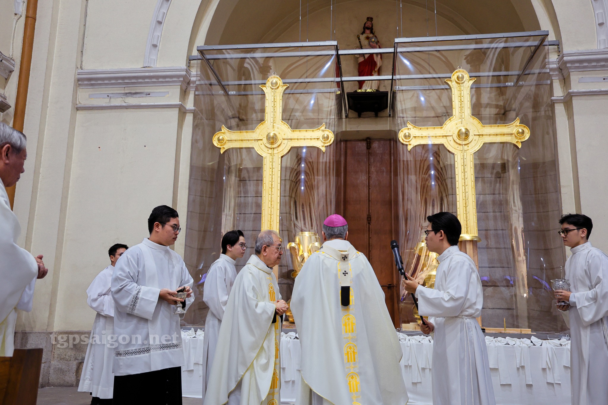 Thánh lễ mừng kính Đức Mẹ Vô Nhiễm Nguyên Tội, ĐTGM Giuse Nguyễn Năng làm phép 2 cây Thánh giá mới của Nhà thờ Chính toà