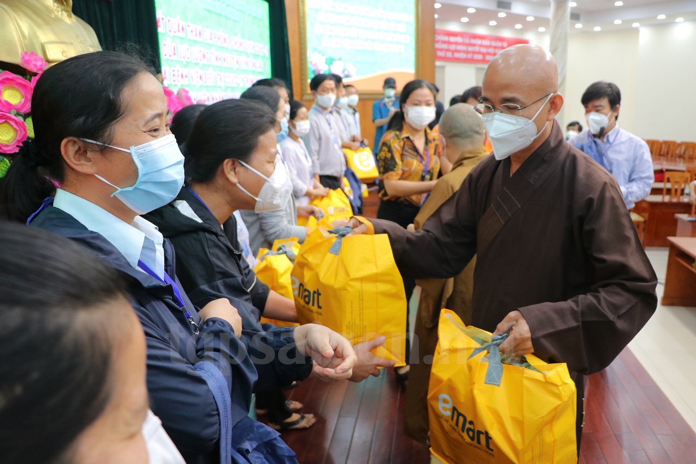 “Được sự chỉ dạy của Hòa Thượng Pháp Chủ, cũng như lời kêu gọi của MTTQ, để theo tinh thần Bồ Tát - sống hết mình vì người, thậm chí quên bản thân, ngày hôm nay, các TNV - bao gồm chư tôn đức tăng, chư tôn đức ni - mang tới chương trình tình nguyện này tâm tư tha thiết vô cùng dũng mãnh. Chúng con nguyện hết lòng hết sức. Cho đến khi nào bệnh viện không còn những bệnh nhân do dịch bệnh Covid, chúng con mới hoàn thành tâm nguyện.”