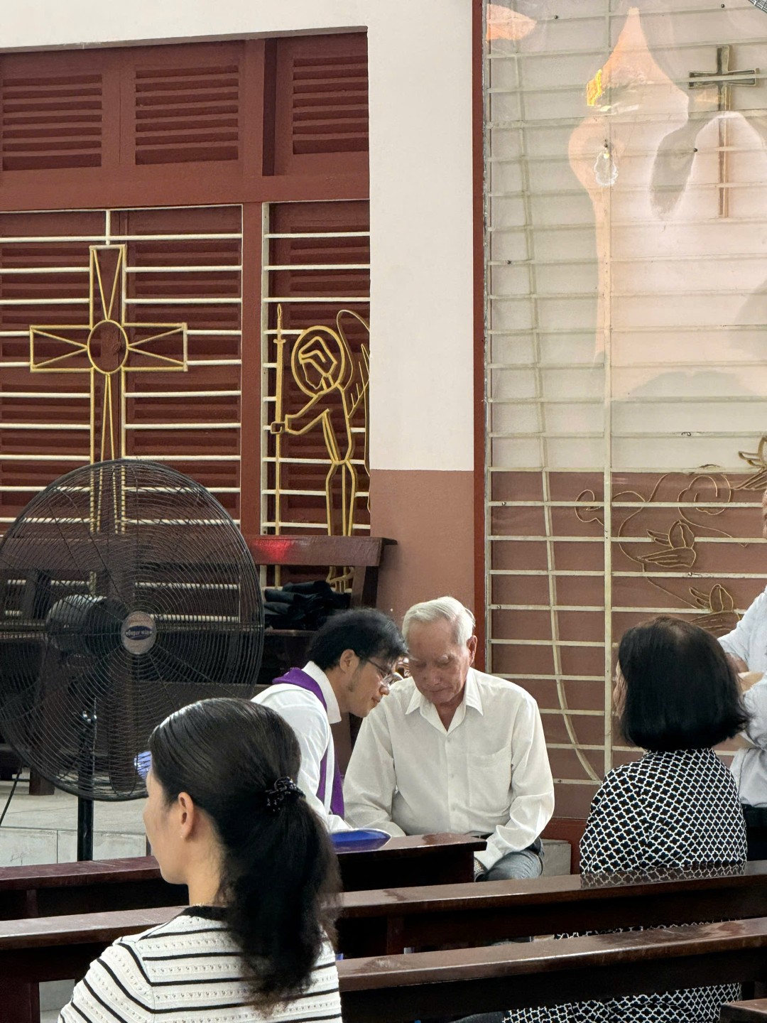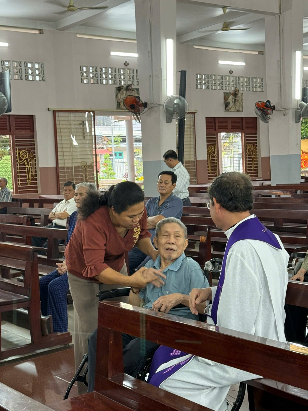 Tôi lặng người quan sát các linh mục. Các Ngài không ngồi chờ, mà đã ân cần đến tận nơi từng người ngồi xe lăn, từng cụ già yếu để ban Bí tích Giải Tội và Xức Dầu Bệnh nhân. Sự tận tụy đó cho tôi thấy một Giáo hội luôn cúi mình xuống với những nỗi đau.