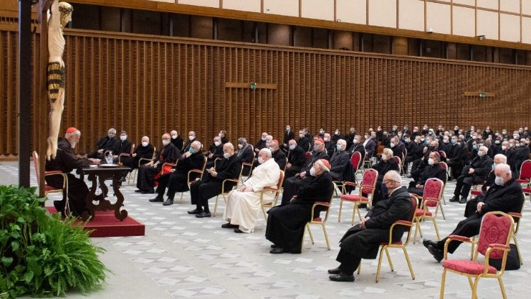 Mở đầu bài suy niệm, lấy ý tưởng trong một bài thơ của nhà thơ người Ý, Giuseppe Ungaretti, nói về thân phận con người như những chiếc lá trên cây vào mùa thu, Đức Hồng y nói: “Tại thời điểm này trong cuộc sống của chúng ta, toàn thể nhân loại đang cùng trải qua cảm giác bấp bênh và bất an do đại dịch virus corona. Như Thánh Grêgôriô Cả viết: đôi khi Chúa hướng dẫn chúng ta bằng lời nói, đôi khi Ngài làm như vậy bằng những sự kiện. Trong năm được đánh dấu bằng sự kiện lớn và đáng sợ của virus corona, chúng ta cố gắng rút ra từ đó giáo huấn mà mỗi người có thể thấy ích lợi cho đời sống thiêng liêng và cá nhân.