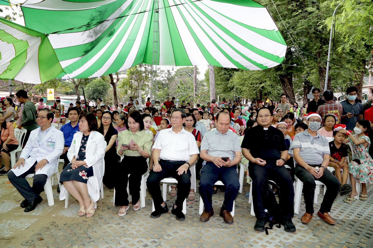 Lúc 8g30, cô Maria Nguyễn Nhiệm Mầu, đại diện DNCG và Ban Bác ái Xã hội, gửi lời chào đến quý đại biểu tham dự. Cô cảm ơn Ban Giám đốc Bệnh viện đã tạo điều kiện cho việc tổ chức Chương trình Giáng Sinh Yêu Thương dành cho các bệnh nhi, mang đến niềm vui và sự sẻ chia ấm áp cho các em; đồng thời chúc mọi người một mùa Giáng Sinh an lành.