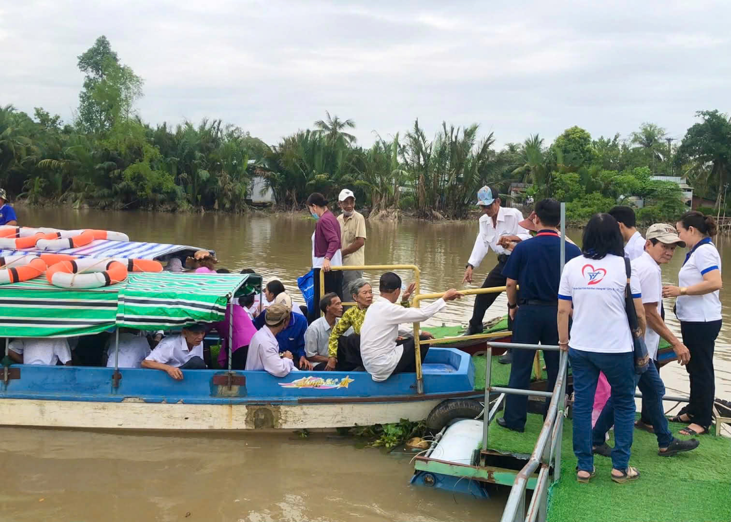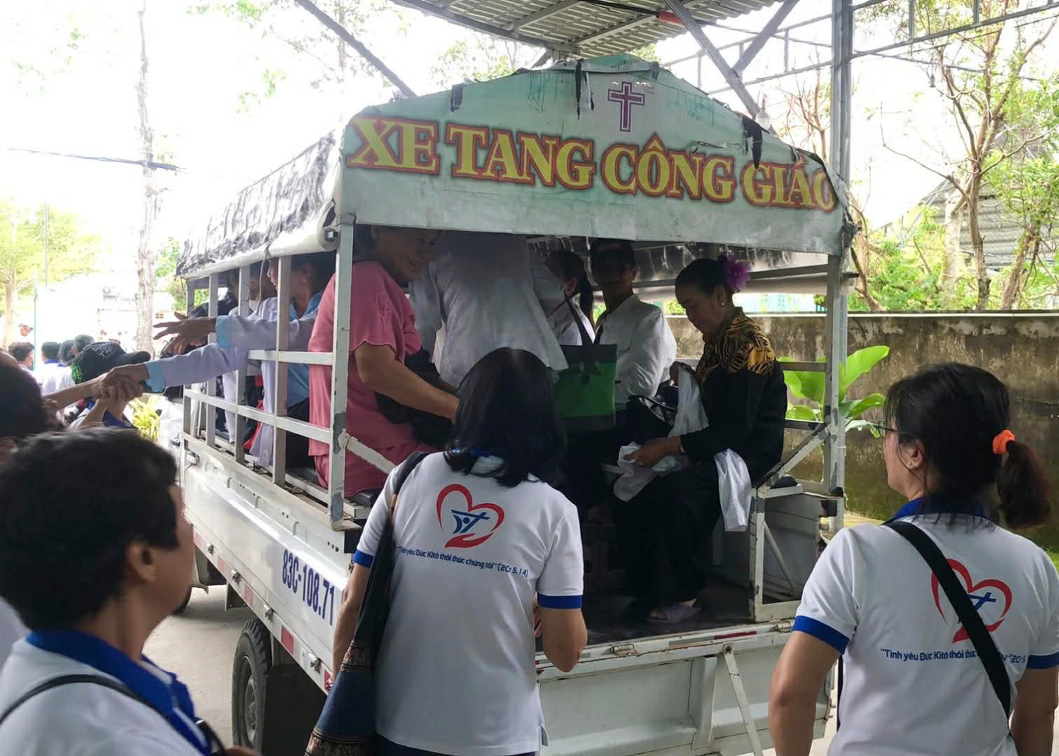 Sau đó, mọi người chia nhau xuống xuồng hoặc xe chuyên dụng để đi đón bà con lương dân ở những vùng sâu phía trong, đến sinh hoạt, tham dự Thánh lễ và học giáo lý hàng tuần. Có cụ bà ngoài 80 tuổi, có những cô chú đi đứng khó khăn, có người chống nạng để đi và còn có các em nhỏ… “Đây cũng là một điểm nổi bật của vùng truyền giáo Rạch Vọp.”