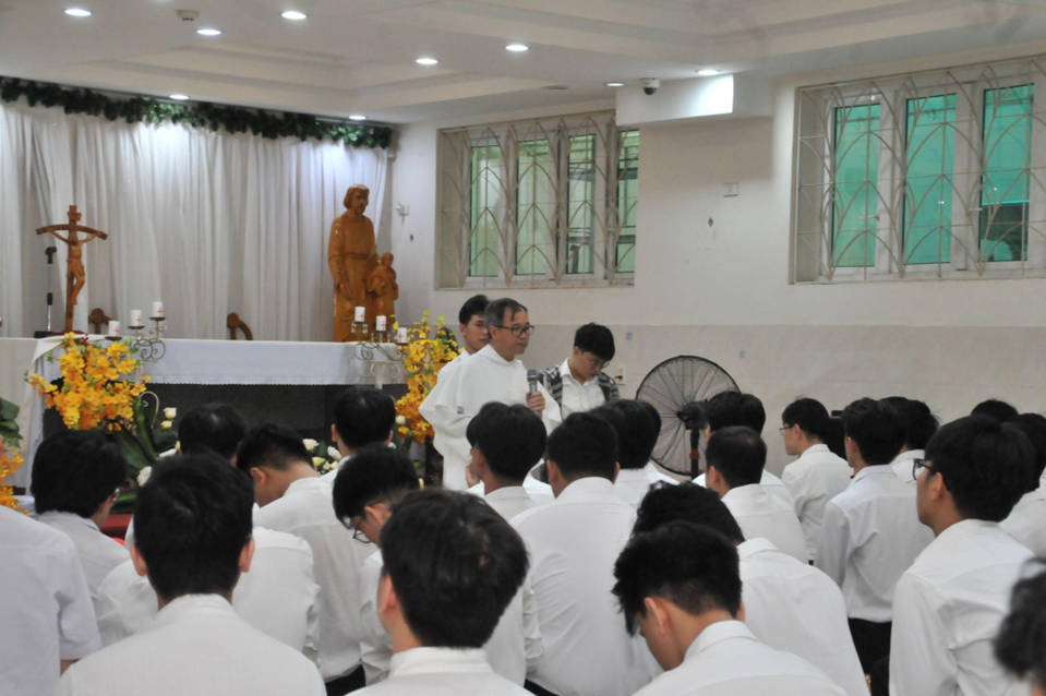 Trong phần chia sẻ định hướng, linh mục Giuse Trần Vinh Hà mời gọi các bạn sinh viên tiếp tục xây dựng đời sống lưu xá dựa trên bốn trụ cột của linh đạo Đa Minh: cầu nguyện, huynh đệ, học tập và bác ái.