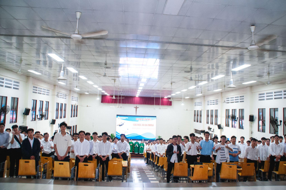 Thánh lễ kết thúc vào khoảng 17g20 cùng ngày. Các bạn sinh viên cùng quý cha, quý thầy chụp hình lưu niệm và cùng nhau chia sẻ bữa ăn huynh đệ, khép lại ngày khai giảng trong niềm vui, bình an và tâm tình tạ ơn.