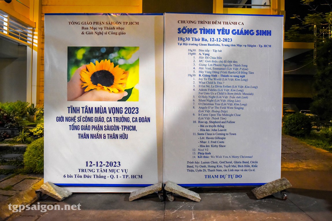 TGPSG -- Đêm Tĩnh Tâm Mùa Vọng với chủ đề “Sống Tình Yêu Giáng Sinh” của Giới Nghệ sĩ Công Giáo, Ca trưởng, Ca đoàn, đã diễn ra vào lúc 19g ngày 12-12-2023 tại Trung tâm Mục vụ Tổng Giáo Phận Sài Gòn (TGPSG).