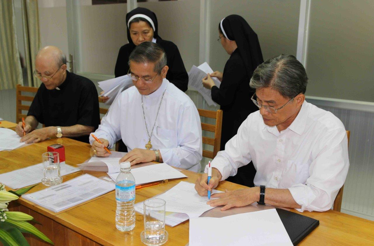 Nghi thức bàn giao kết thúc bằng lời kinh tạ ơn Chúa tại nhà nguyện của văn phòng Caritas VN với sự hiện diện của một số khách mời, đại diện văn phòng Caritas Sài Gòn và nhân viên văn phòng Caritas Việt Nam.