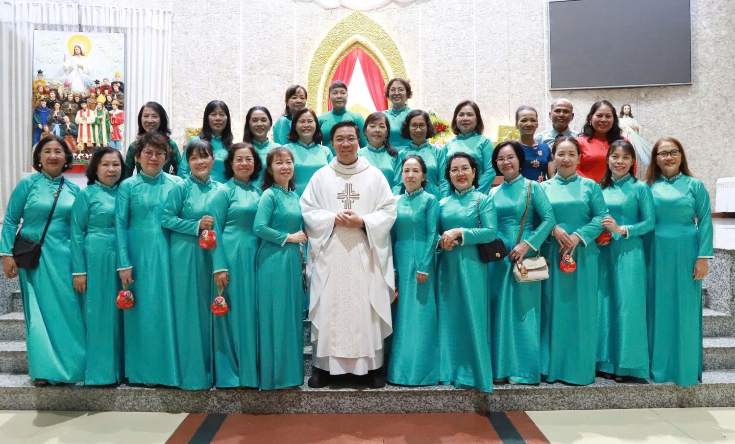 Sau bài hát kết lễ, Lm chủ tế Vinh Sơn đã chụp hình chung với Ban điều hành và ca đoàn.