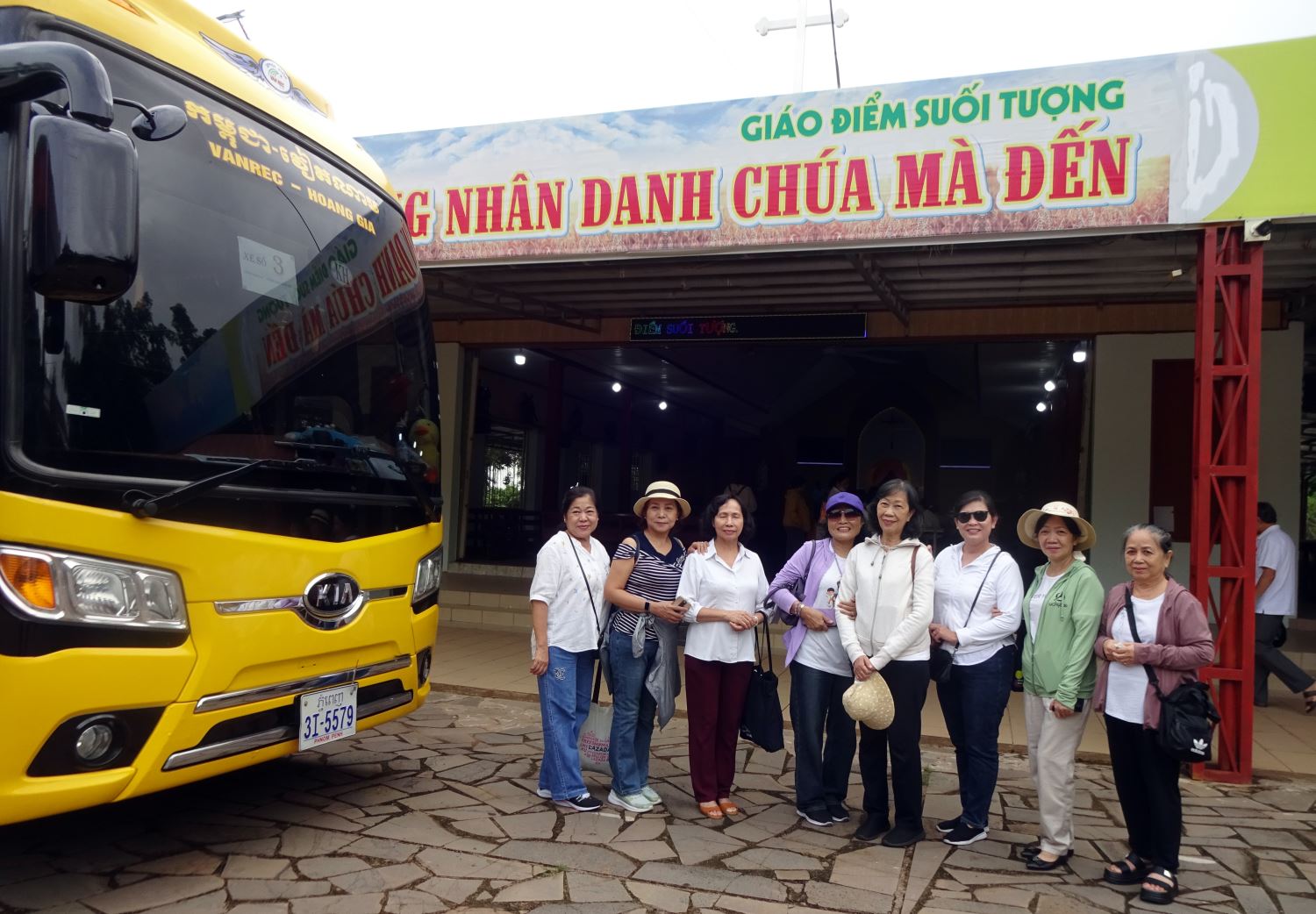 Giây phút thánh hóa tại đài Đức Mẹ kết thúc, chương trình khởi hành lúc 5 giờ sáng. Trên xe, anh chị em lắng đọng tâm hồn trong kinh nguyện, dâng lời cầu xin Chúa chúc lành cho mọi người và tạ ơn Mẹ Maria. Hành trình hôm nay càng ý nghĩa khi đoàn hướng về giáo điểm Suối Tượng, nơi đời sống còn nhiều khó khăn, để chia sẻ tình bác ái và mang niềm vui, hy vọng cho cộng đồng.