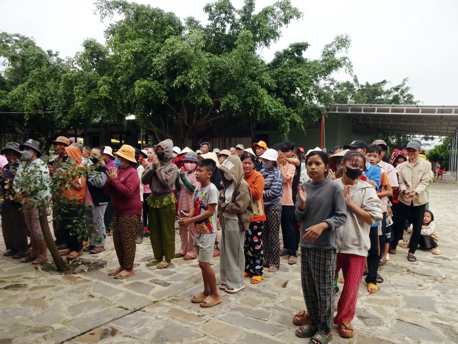 Đoàn bác ái phát tổng cộng 250 phần quà gồm gạo, mì và nhu yếu phẩm cho các hộ nghèo, 100 phần quà cho thiếu nhi, với hiện vật trị giá 125 triệu đồng và hiện kim 50 triệu đồng.