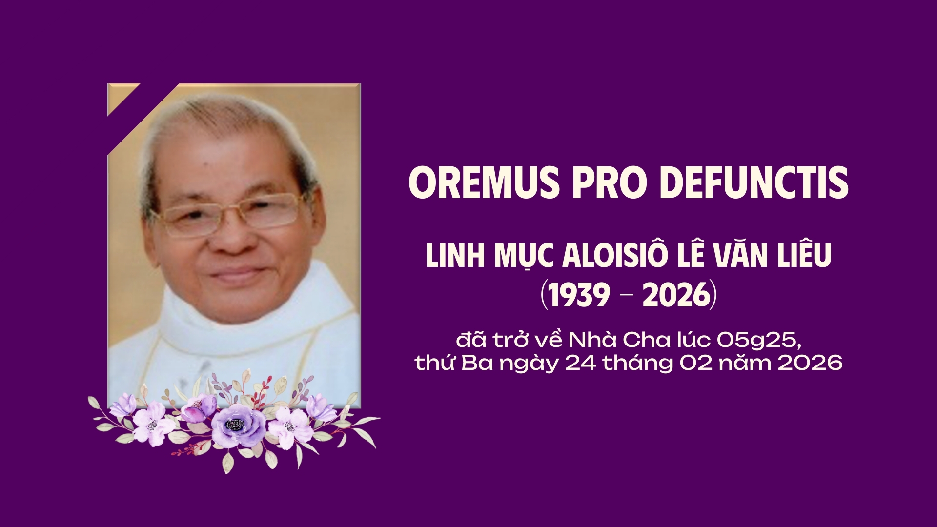 - Cáo phó: Linh mục Aloisiô Lê Văn Liêu qua đời