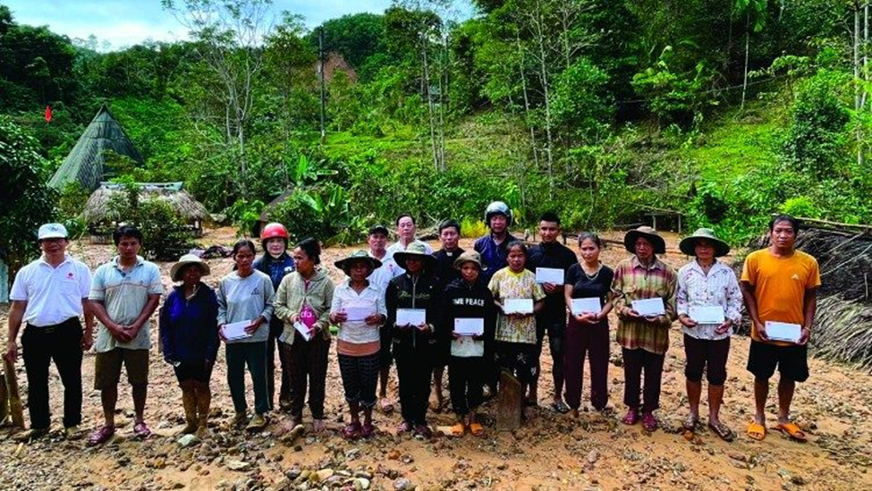 Nhân viên Caritas Đà Nẵng và tình nguyện viên giáo xứ phân phát cứu trợ cho các gia đình bị ảnh hưởng tại một ngôi làng biệt lập ở tỉnh Quảng Nam, nơi nhiều hộ dân bị vùi lấp bởi đất đá sạt lở sau nhiều tuần mưa lớn.