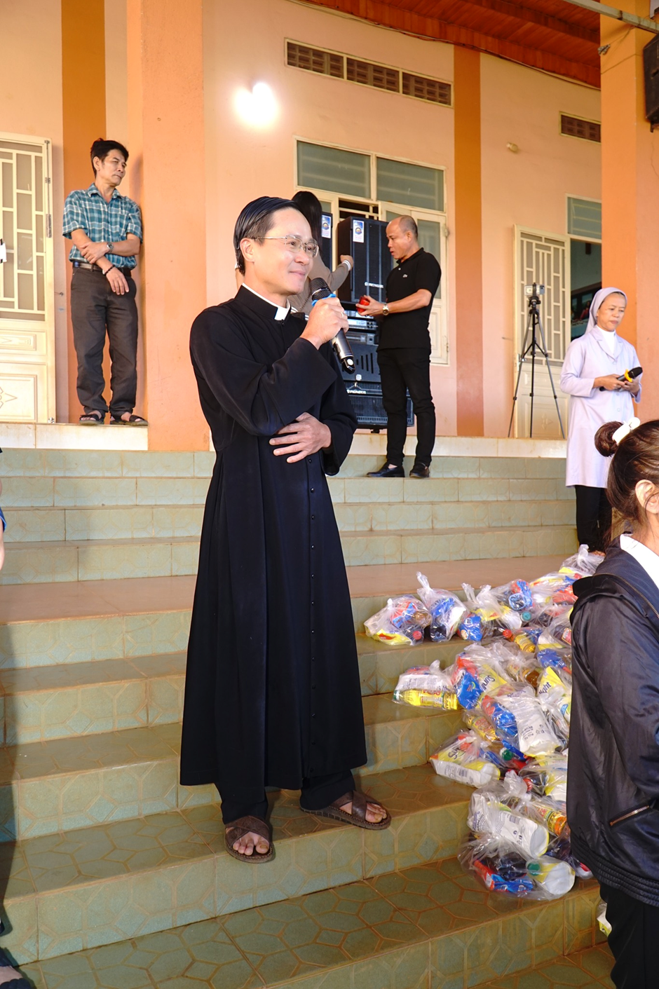 Đáp lời, cha quản nhiệm Giuse bày tỏ lòng tri ân đối với đoàn Caritas Hạt Xóm Mới và các ân nhân đã quảng đại yêu thương, nâng đỡ cộng đoàn nơi đây.