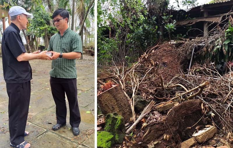 - Con là người dân địa phương sống từ nhỏ chí lớn ở đây, chưa thấy một cơn bão nào có sức tàn phá như cơn bão số 9. Nó hoành hành từ 4 giờ sáng dai dẳng đến tận 2 giờ trưa, làm tốc mái 99% nhà ở Quảng Ngãi. Trong 9 Giáo Xứ và 1 Giáo Họ, có đảo Lý Sơn là bị thiệt hại nặng nề nhất. Hôm nay là áp thấp của cơn bão số 10, từ nay đến cuối năm sẽ còn nhiều cơn bão ập đến nữa.