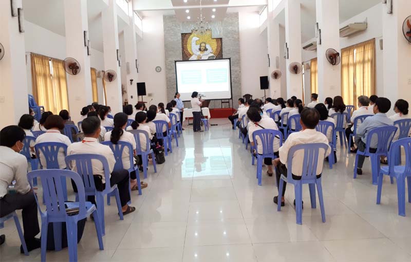 Trình bày viên của buổi tập huấn là Soeur Elisabeth Marie Vũ Thị Tuyết Minh, phụ trách Ban hỗ trợ NKT của Cartias TGP Sài gòn. Cùng tham dự buổi tập huấn là 55 thành viên Caritas thuộc các Giáo hạt: Chí Hòa, Gia Đình, Gò Vấp, Phú Nhuận, Sài gòn – Chợ Quán, Tân Định, Tân Sơn Nhì, Xóm Chiếu, Xóm Mới và Phú Nhuận.