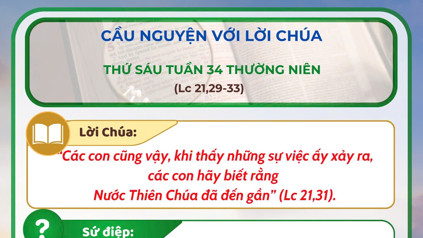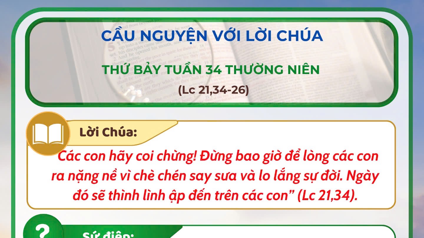 - Cầu nguyện với Lời Chúa: thứ Bảy tuần 34 thường niên năm C