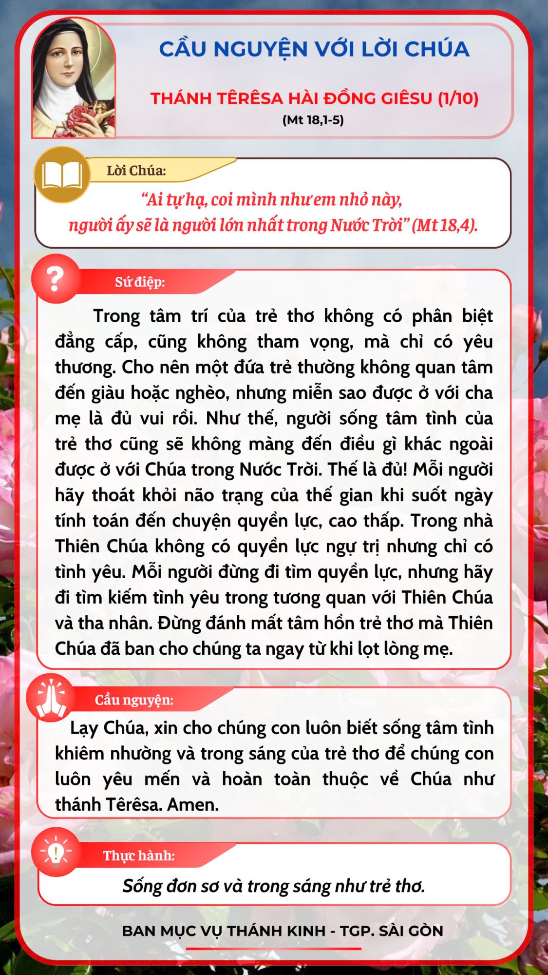 Cầu nguyện với Lời Chúa: Thánh Têrêsa Hài Đồng Giêsu