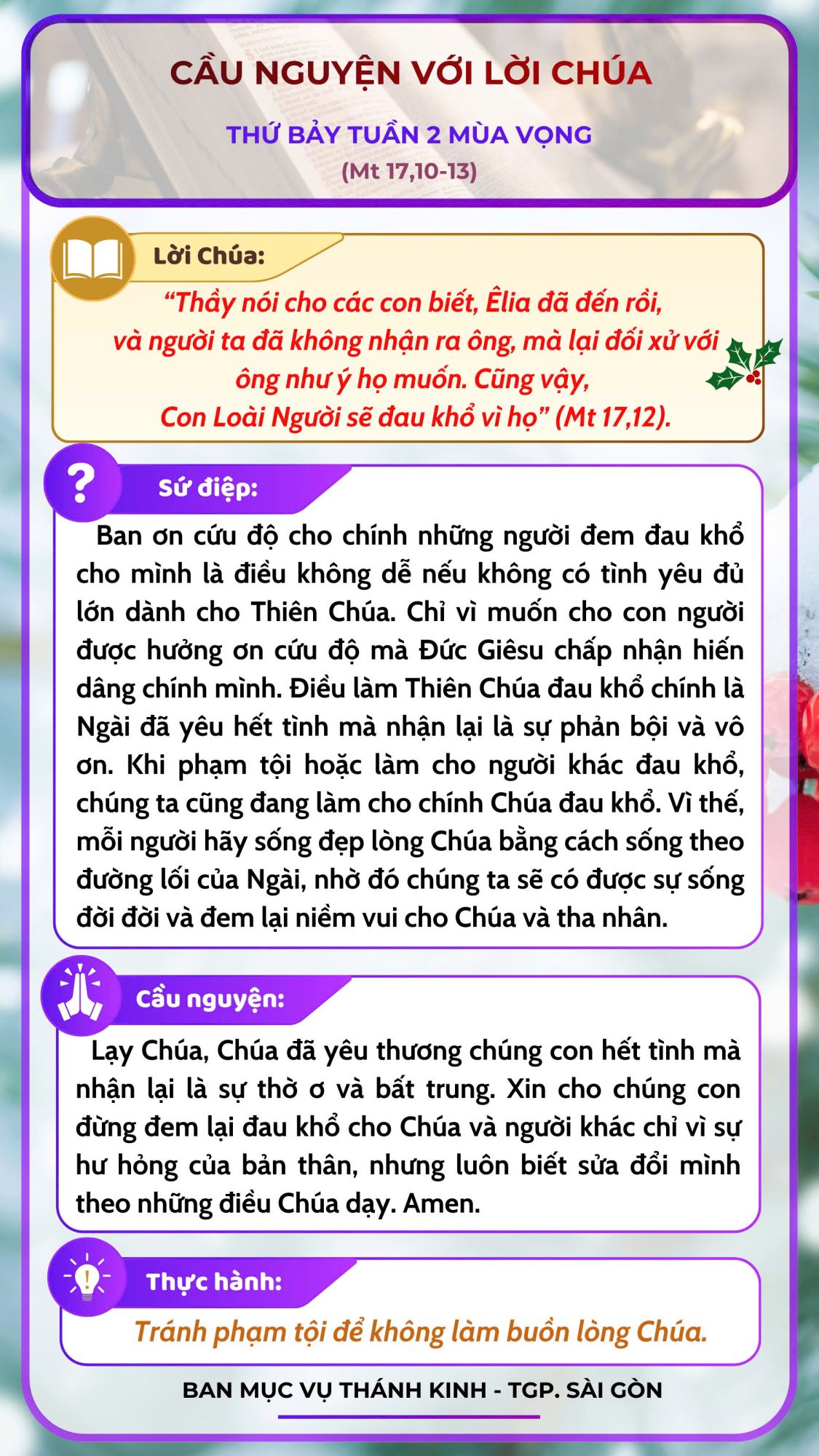 Cầu nguyện với Lời Chúa: thứ Bảy tuần 2 Mùa vọng năm A