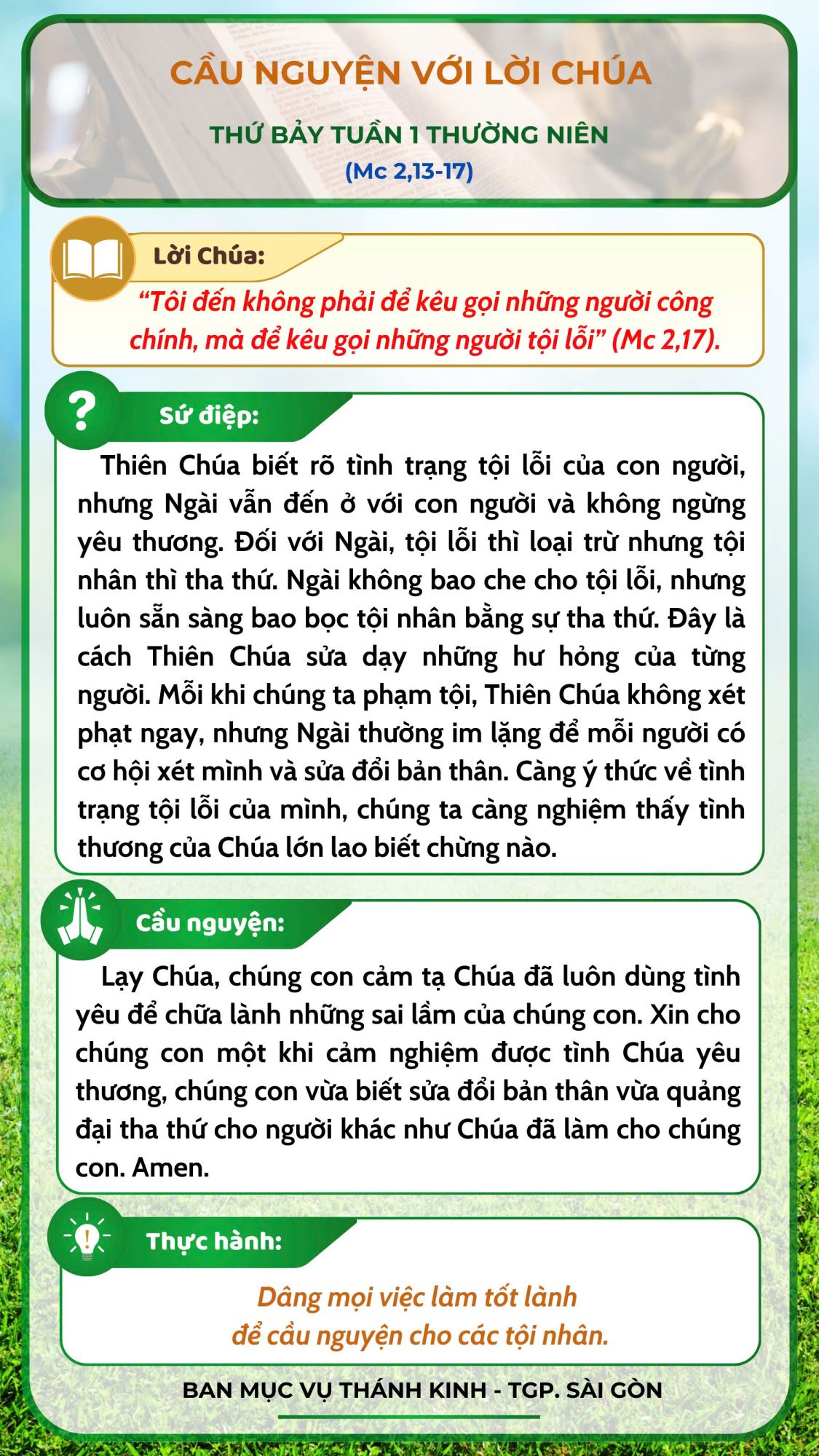 Cầu nguyện với Lời Chúa: thứ Bảy tuần 1 thường niên năm A