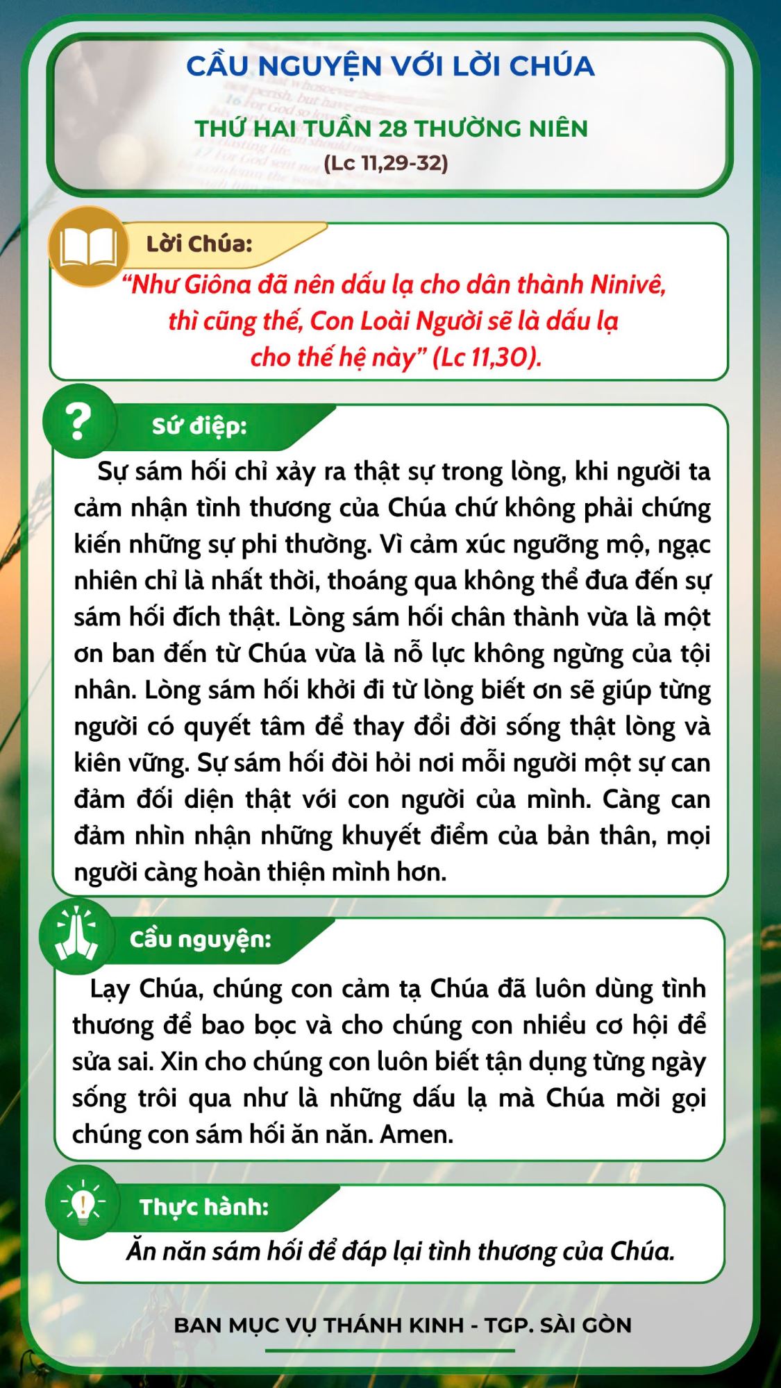 Cầu nguyện với Lời Chúa: thứ Hai tuần 28 thường niên năm C