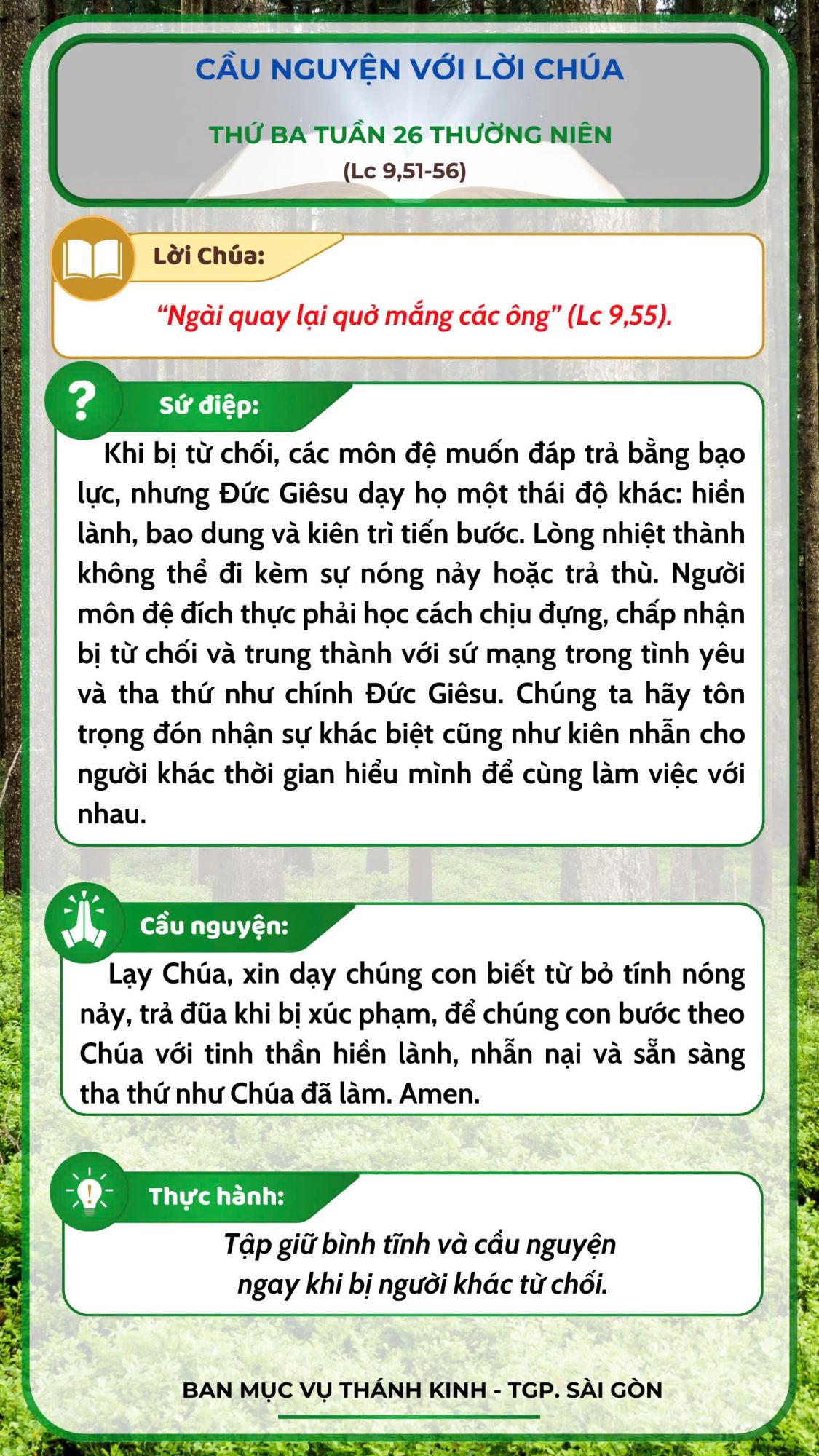 Cầu nguyện với Lời Chúa: thứ Ba tuần 25 thường niên năm C -