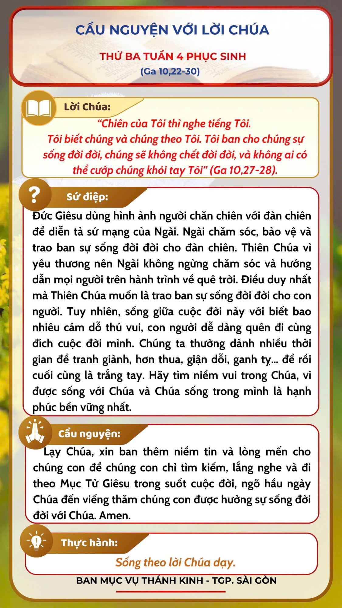 Cầu nguyện với Lời Chúa: Thứ Ba tuần 4 Phục Sinh năm A