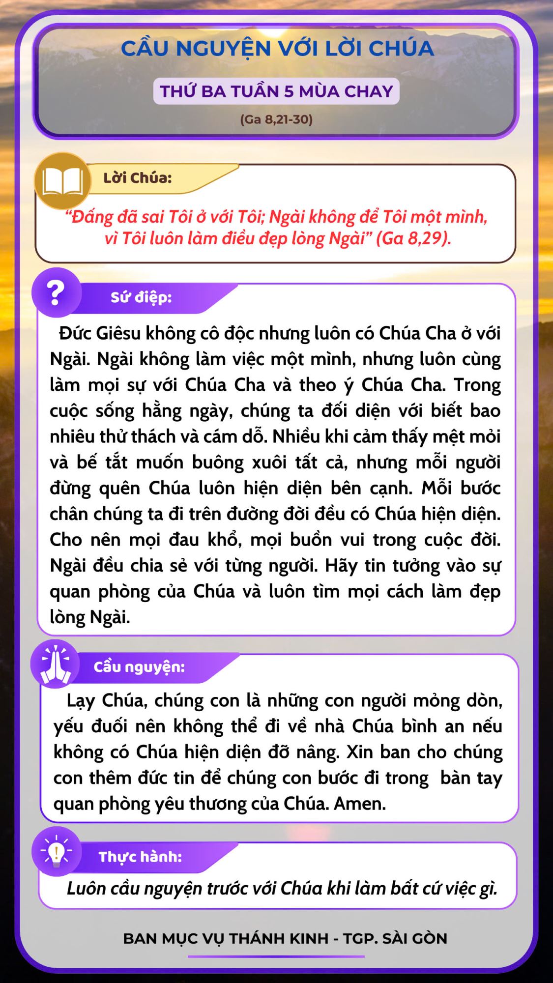 Cầu nguyện với Lời Chúa: Thứ Ba tuần 5 Mùa Chay