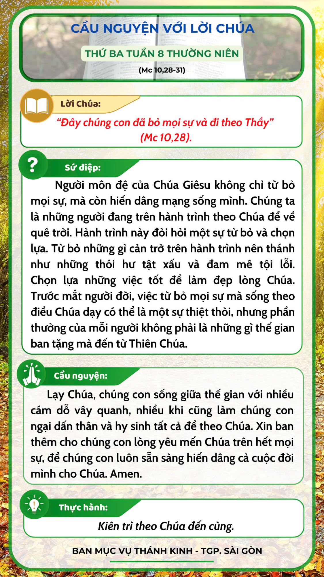 Cầu nguyện với Lời Chúa: Thứ Ba Tuần 8 Thường Niên