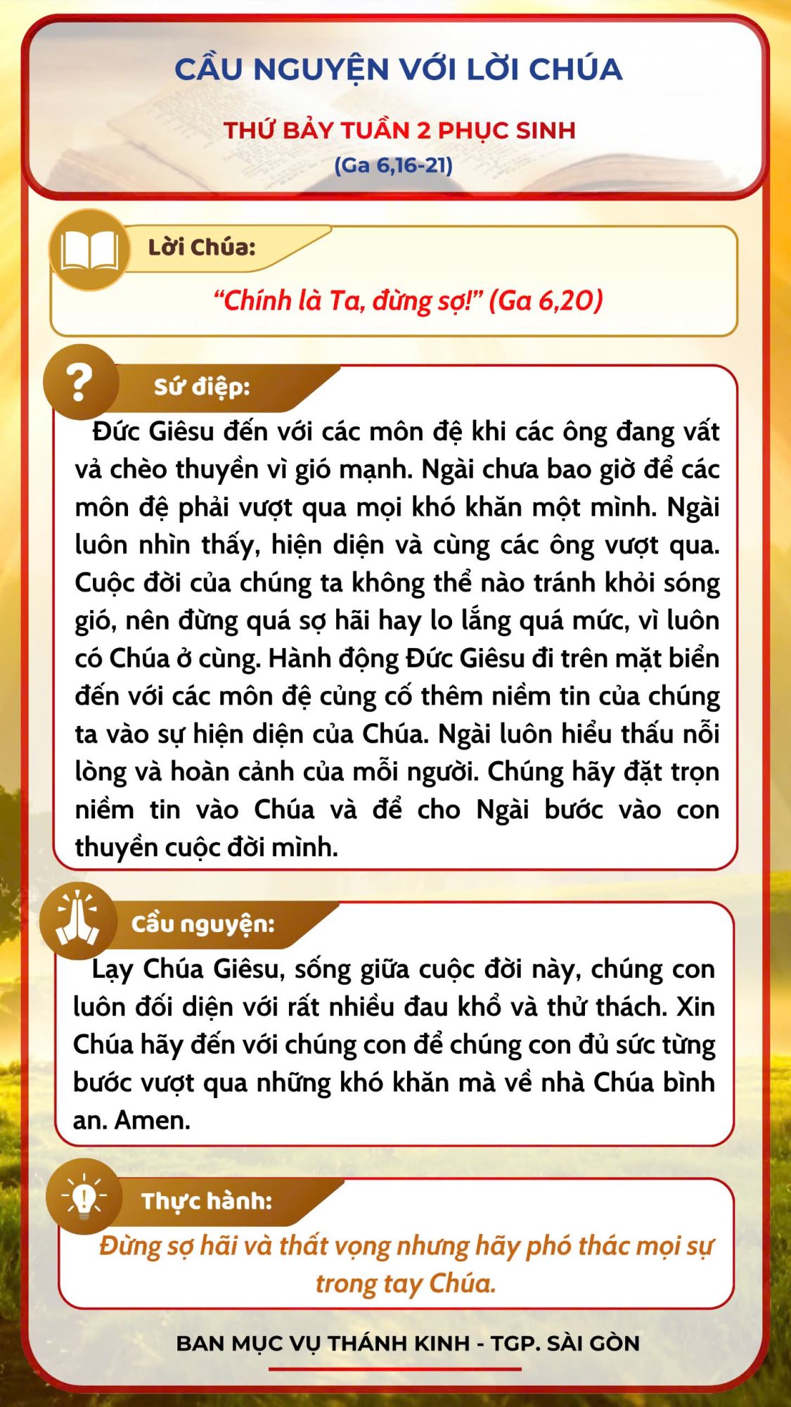 Cầu nguyện với Lời Chúa: Thứ Bảy tuần 2 Phục Sinh năm A