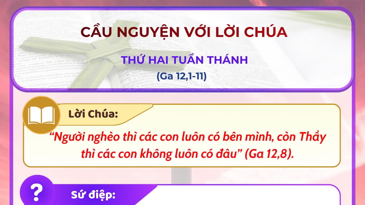 - Cầu nguyện với Lời Chúa: thứ Hai tuần Thánh năm A