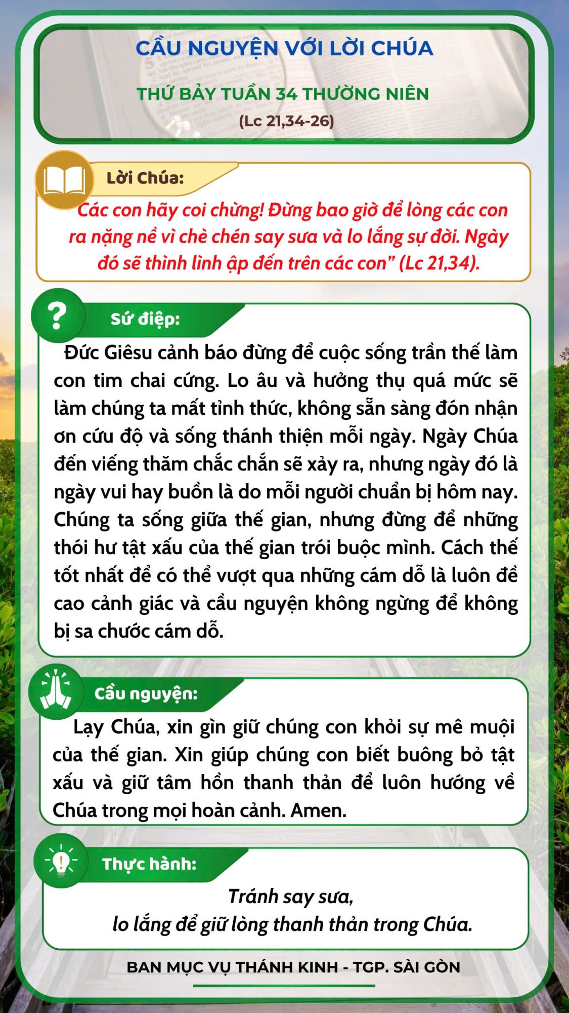 Cầu nguyện với Lời Chúa: thứ Bảy tuần 34 thường niên năm C
