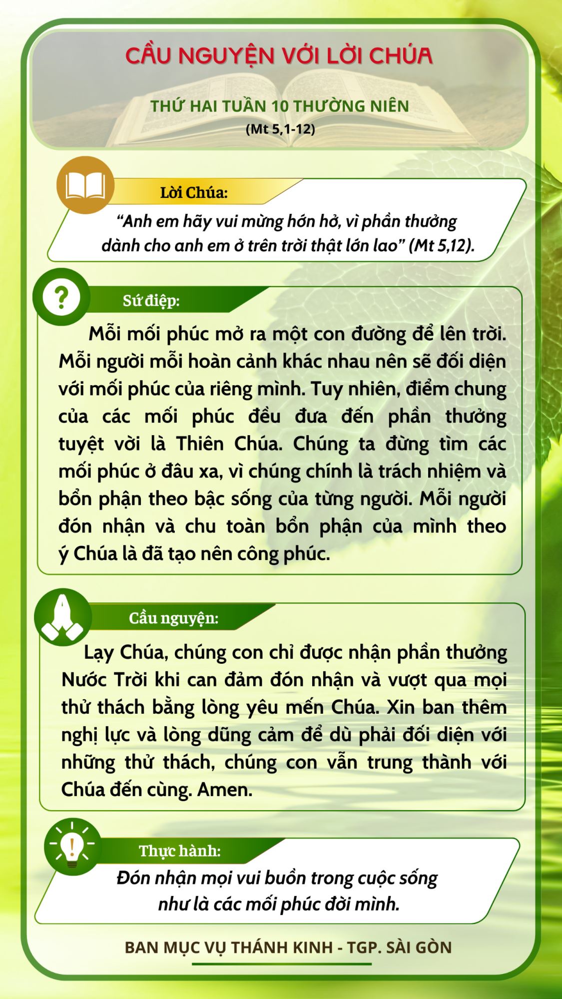 Cầu nguyện với Lời Chúa: Thứ Bảy Tuần 11 Thường Niên -