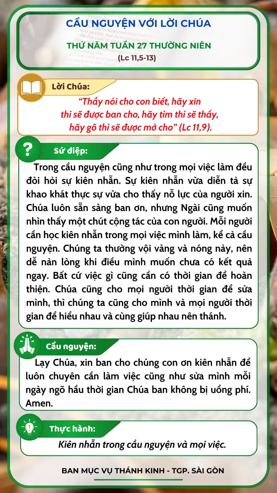 Cầu nguyện với Lời Chúa: thứ Bảy tuần 27 thường niên năm C -