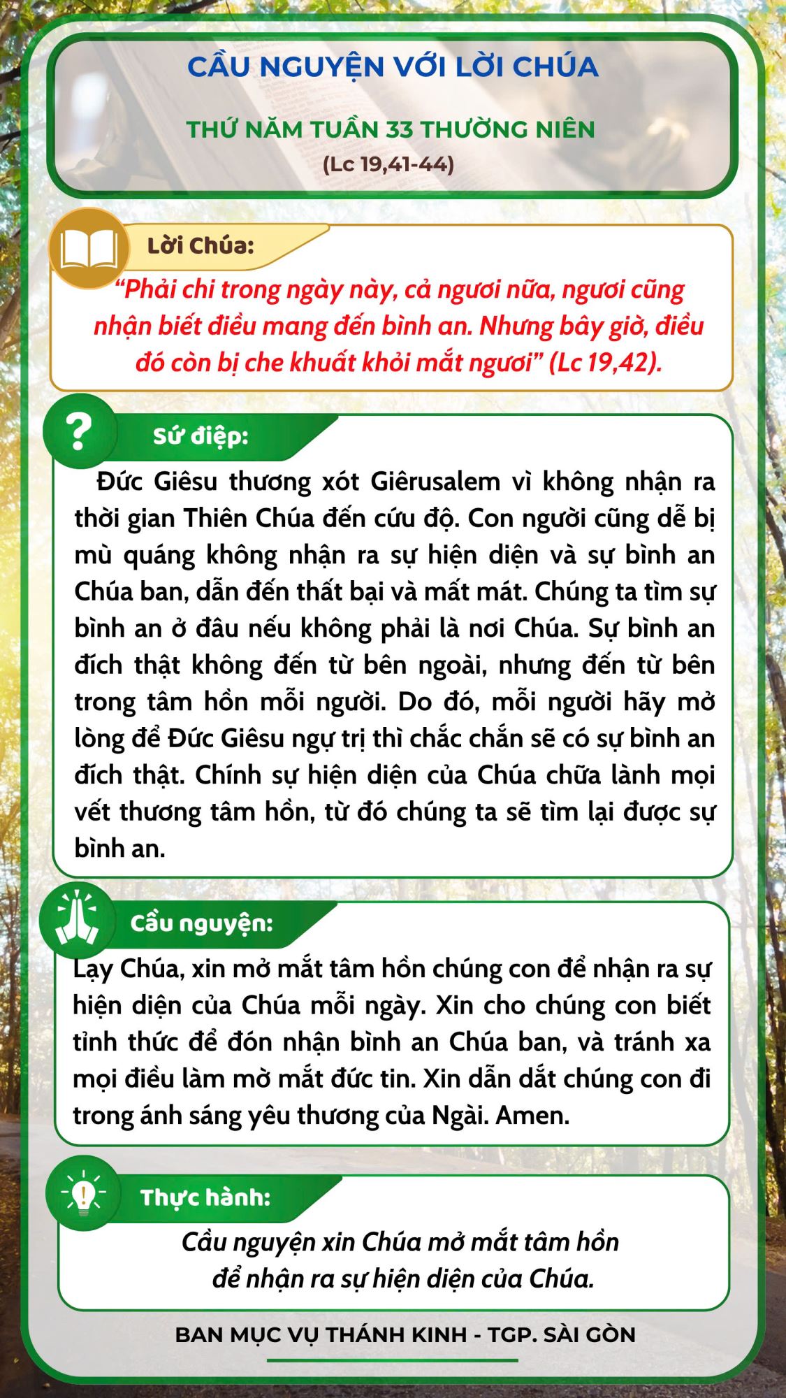 - Cầu nguyện với Lời Chúa: thứ Tư tuần 33 thường niên năm C