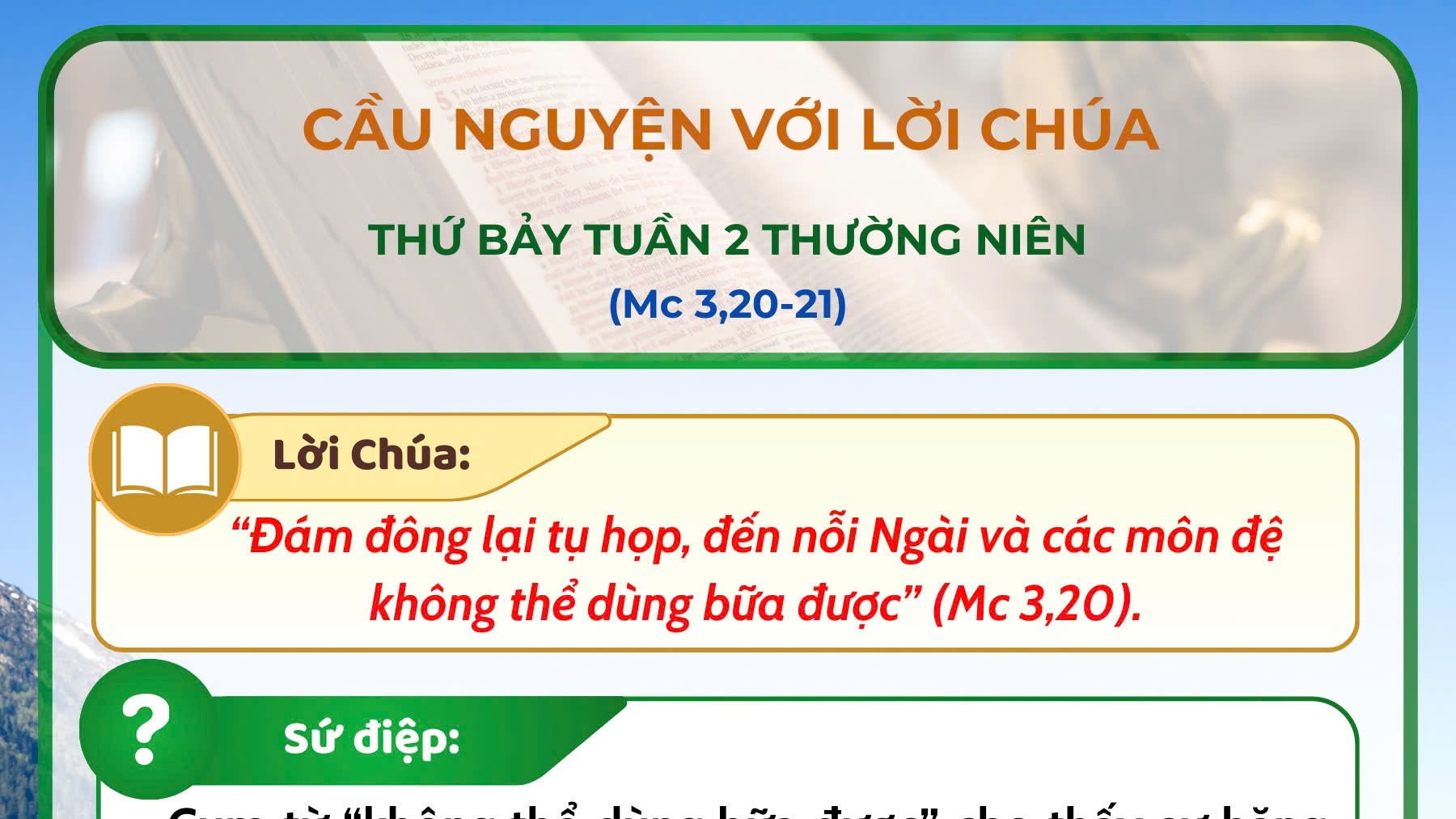 - Cầu nguyện với Lời Chúa: thứ Bảy tuần 2 thường niên năm A