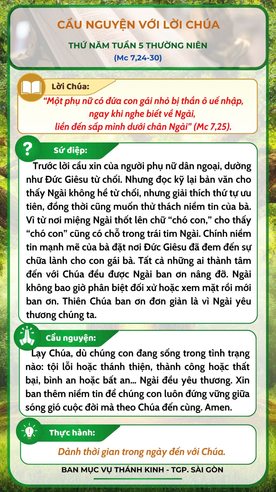 - Cầu nguyện với Lời Chúa: thứ Tư tuần 5 thường niên năm A
