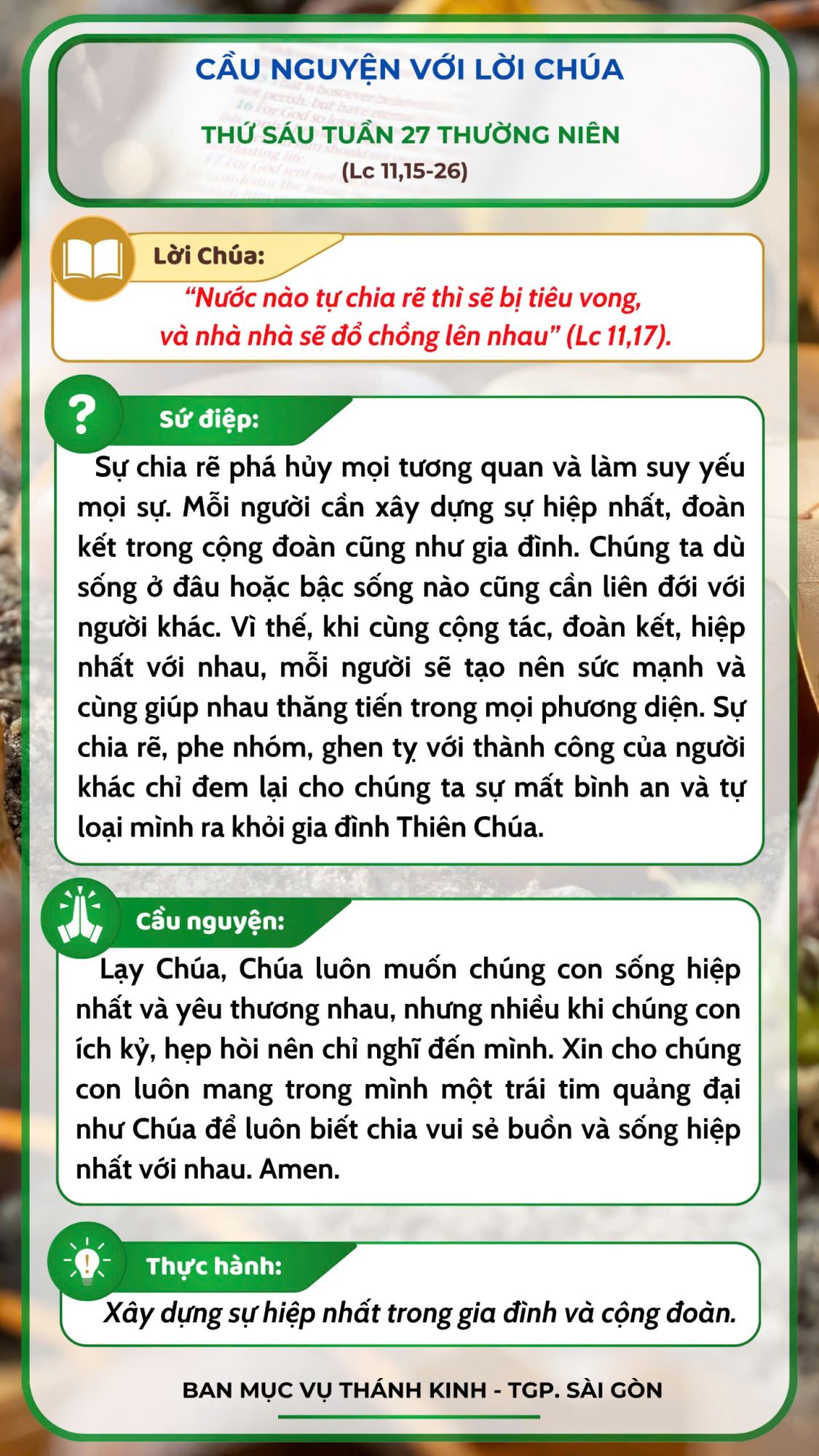 - Cầu nguyện với Lời Chúa: thứ Hai tuần 28 thường niên năm C