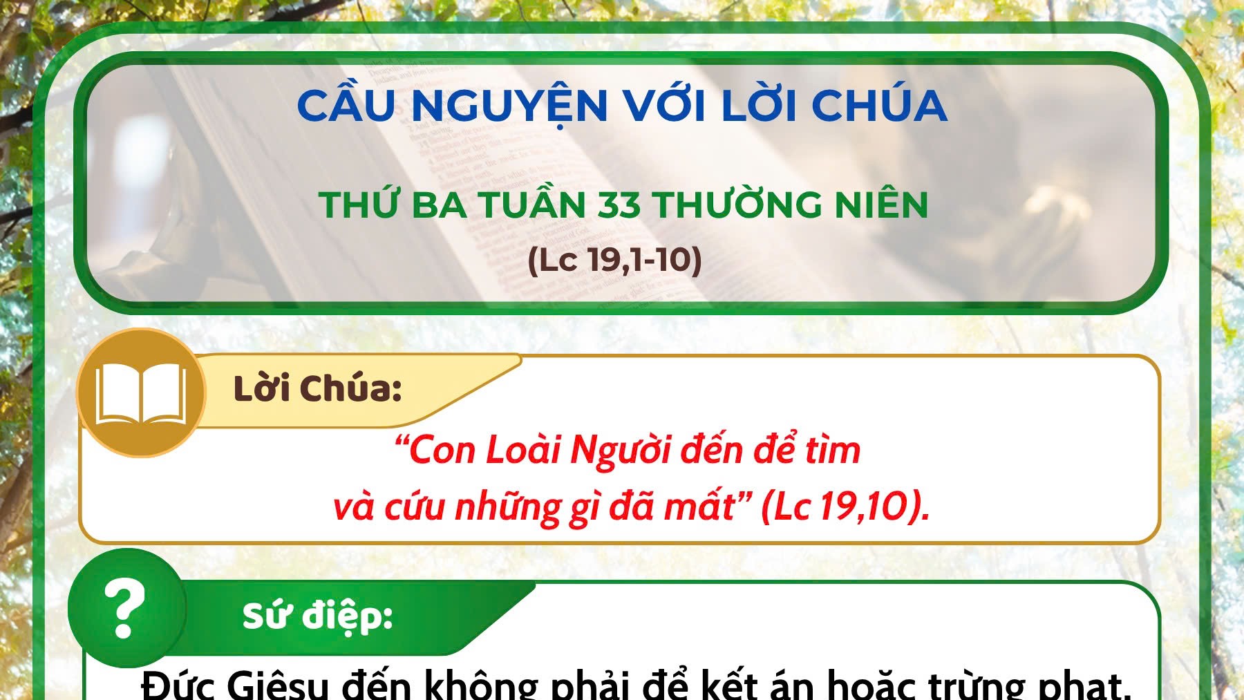 - Cầu nguyện với Lời Chúa: thứ Ba tuần 33 thường niên năm C