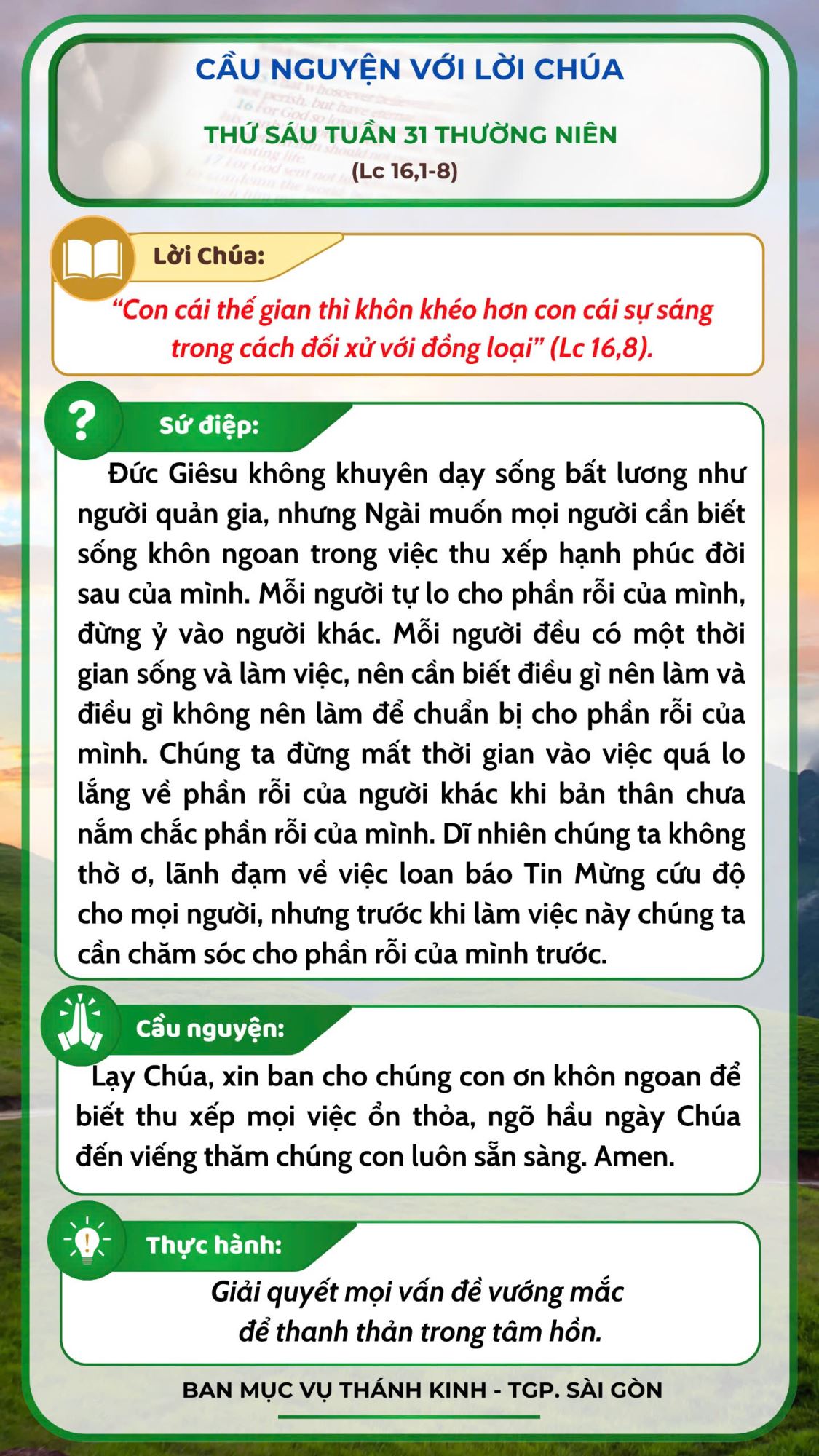 - Cầu nguyện với Lời Chúa: Thứ Năm tuần 31 thường niên năm C