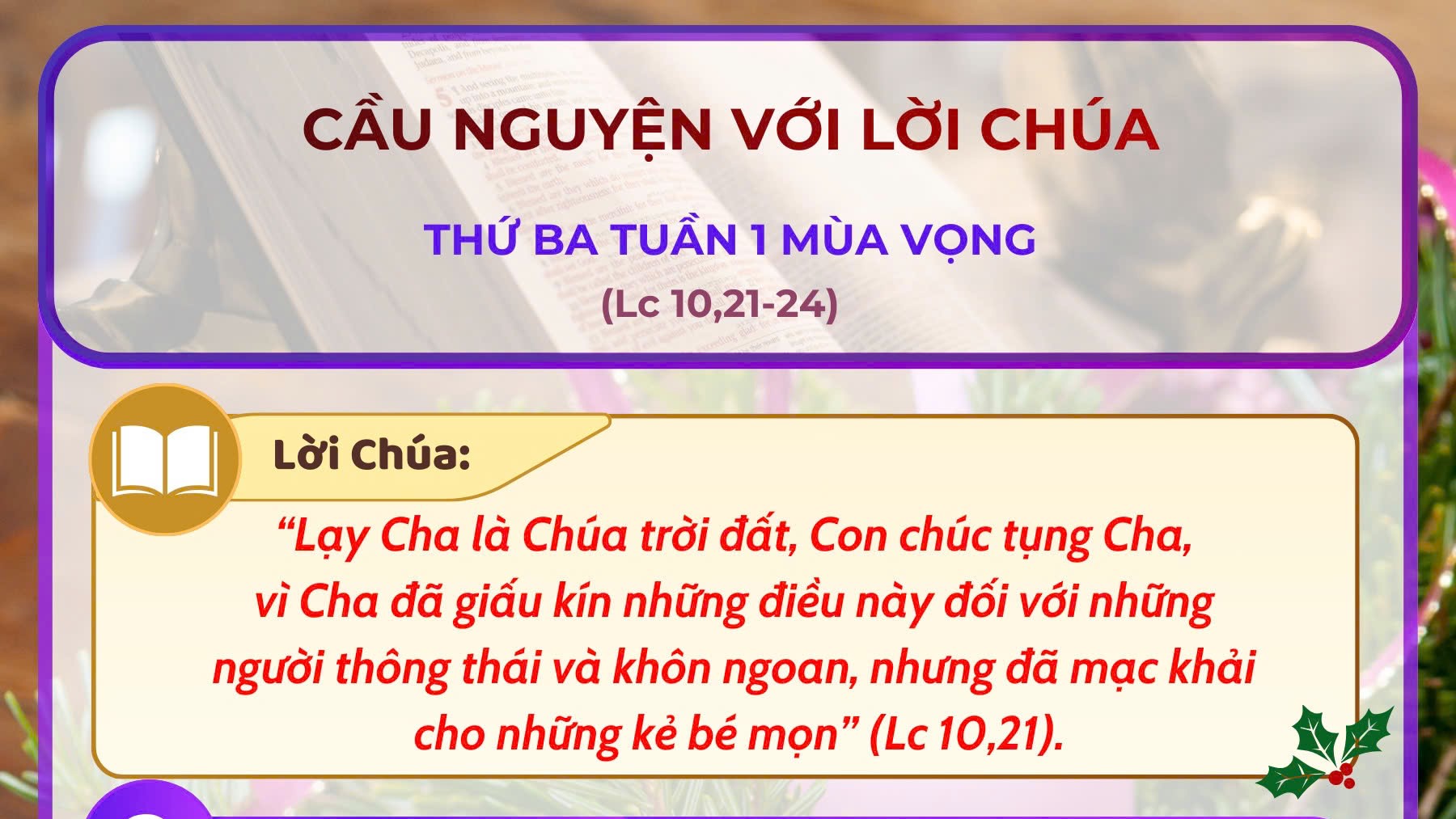 - Cầu nguyện với Lời Chúa: thứ Ba tuần 1 Mùa Vọng Năm A