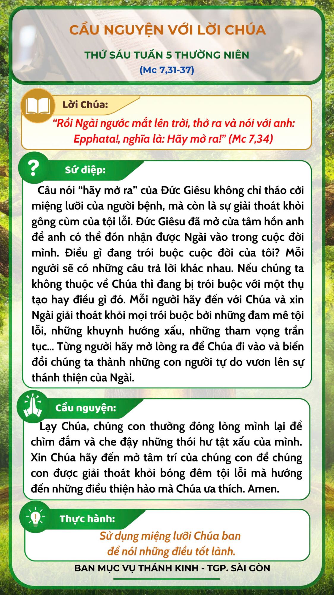 - Cầu nguyện với Lời Chúa: thứ Năm tuần 5 thường niên năm A