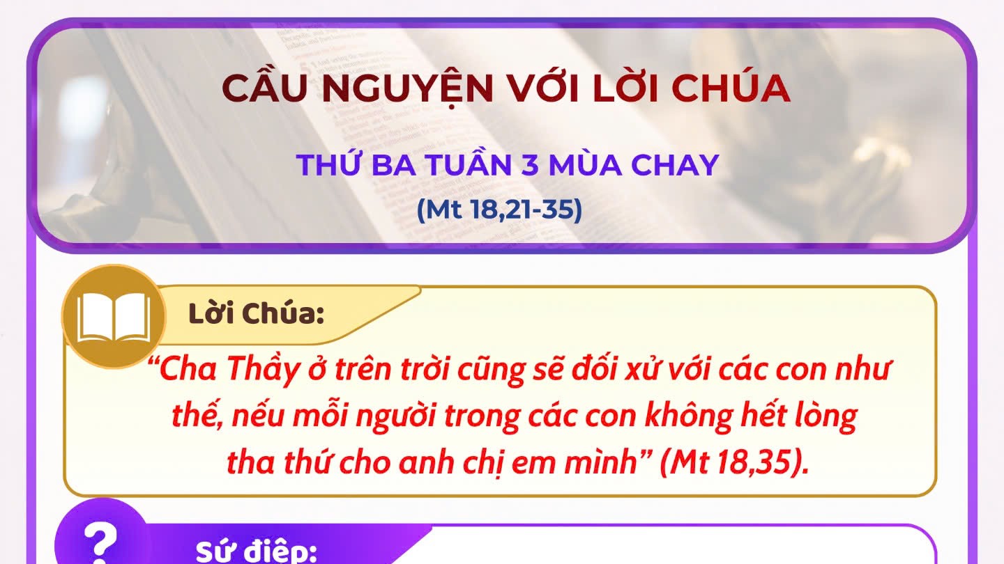- Cầu nguyện với Lời Chúa: thứ Ba Tuần 3 Mùa Chay