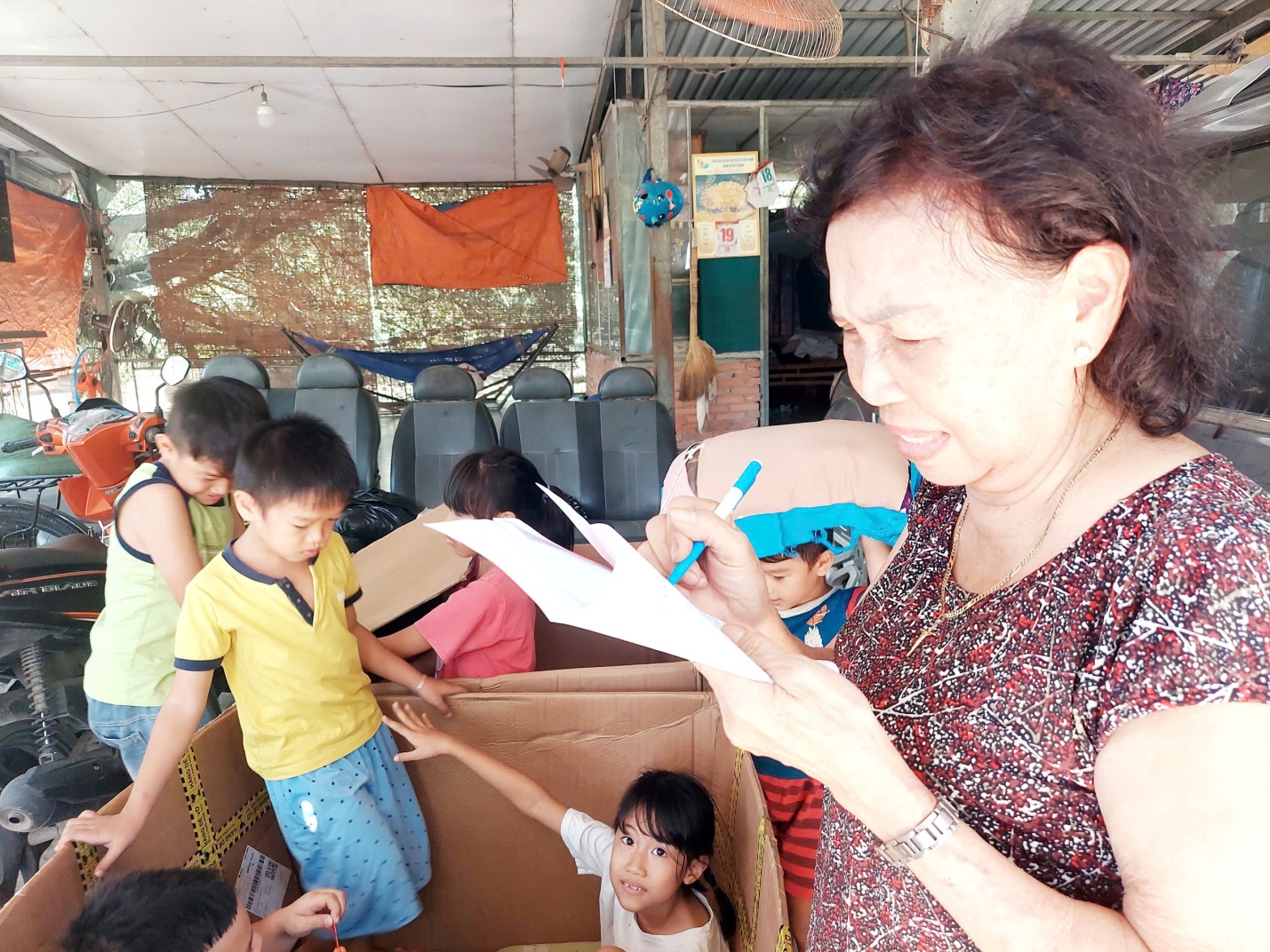 “Ngày nào hai vợ chồng cũng đi bán vé số, ráng để dành 100.000 đồng phụ các con trả tiền thuê nhà. Còn lại thì lo cơm nước hằng ngày. Các con thì công việc thất thường, nuôi cháu đi học cũng chật vật. Gia đình chúng tôi không có đạo, nhưng được Ban Bác ái và giáo xứ quan tâm như thế này, chúng tôi cảm động và biết ơn nhiều lắm.”