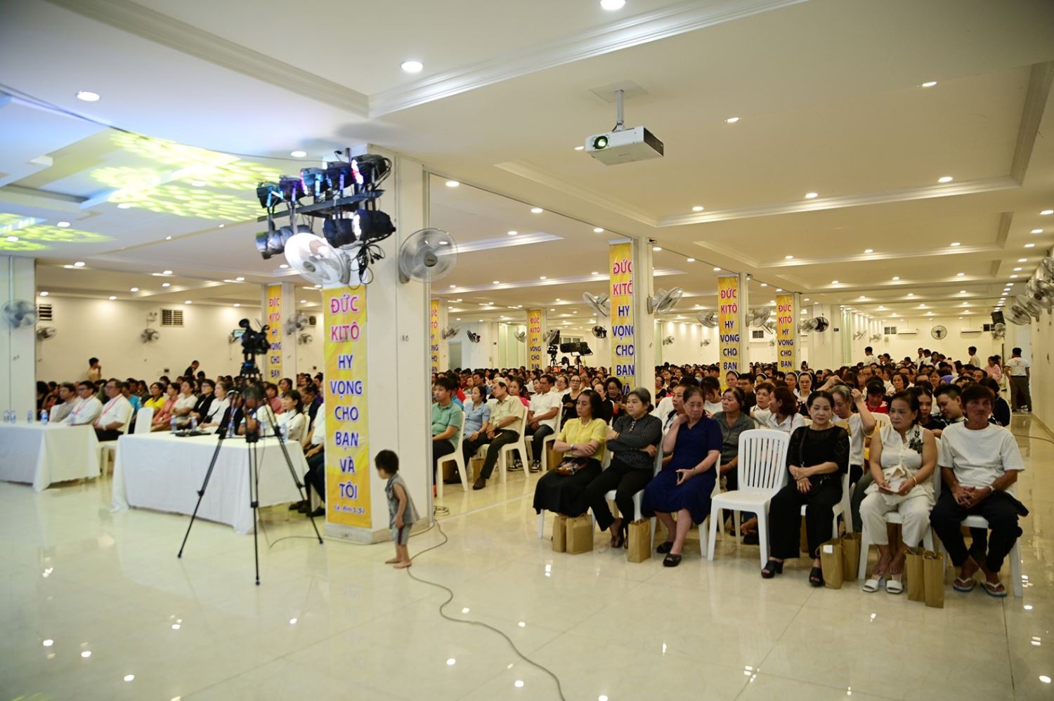 Các anh chị em trong Ban LBTM khoảng 60 người đã hân hoan chào đón khách đến tham dự, và mỗi khách được trao tặng túi quà. Trong số đó, có một món quà quý gía nhất, cách đặc biệt đối với anh chị em chưa biết về Chúa! Đó là cuốn sách “Đạo Yêu thương”, tác giả: Đức Giám mục Phêrô Nguyễn Văn Khảm; ngài mong muốn chuyển tải “Câu chuyện tình” của Thiên Chúa Tình yêu, và Giáo hội của Người một cách ngắn gọn, dễ hiểu. Ước mong trong cuộc đời khi chúng ta gặp phải hoàn cảnh không còn biết bám víu vào đâu, thì hãy tin rằng luôn luôn ngay bên cạnh chúng ta có “Đức Kitô - Hy vọng cho bạn và cho tôi”.