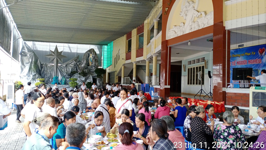 Vào lúc 09g30 ngày 23/11/2024, tại giáo xứ Cao Thái đã tổ chức buổi họp mặt các người già yếu, có hoàn cảnh khó khăn trong giáo hạt Thủ Thiêm. Hơn 100 khách được Ban Caritas của các giáo xứ mời đến tham dự và được các anh chị em thành viên phục vụ bữa cơm nhân ái “agape”.