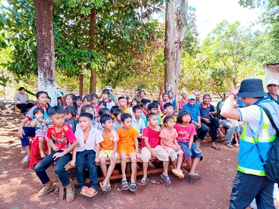 Đúng 9g, đoàn đến Giáo xứ An Bình - Thôn 2, xã Đakia, Bù Gia Mập, tỉnh Bình Phước để phát quà cho người cao tuổi, trẻ em và các gia đình có hoàn cảnh khó khăn, bao gồm cả một số hộ dân nghèo ngoài Công giáo.